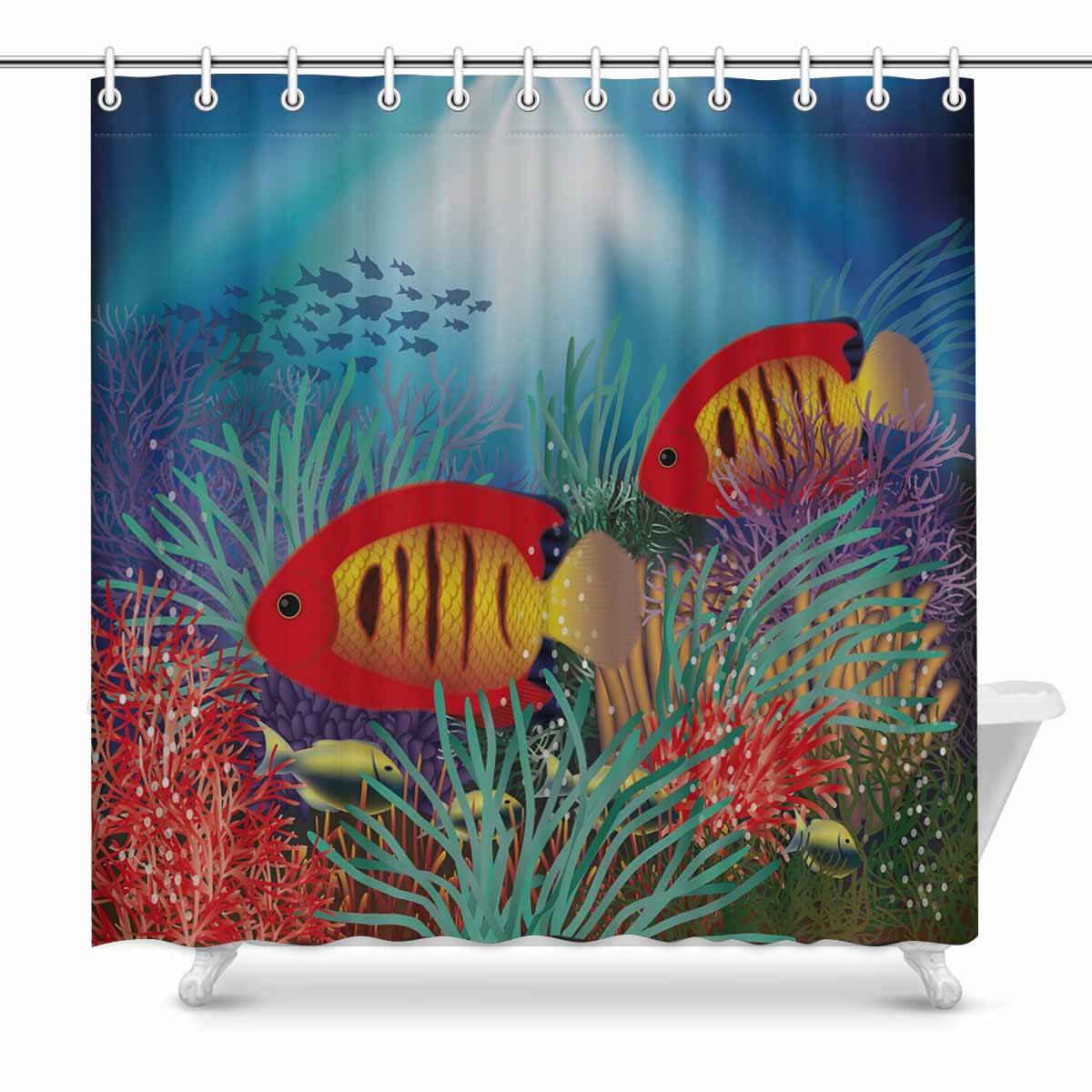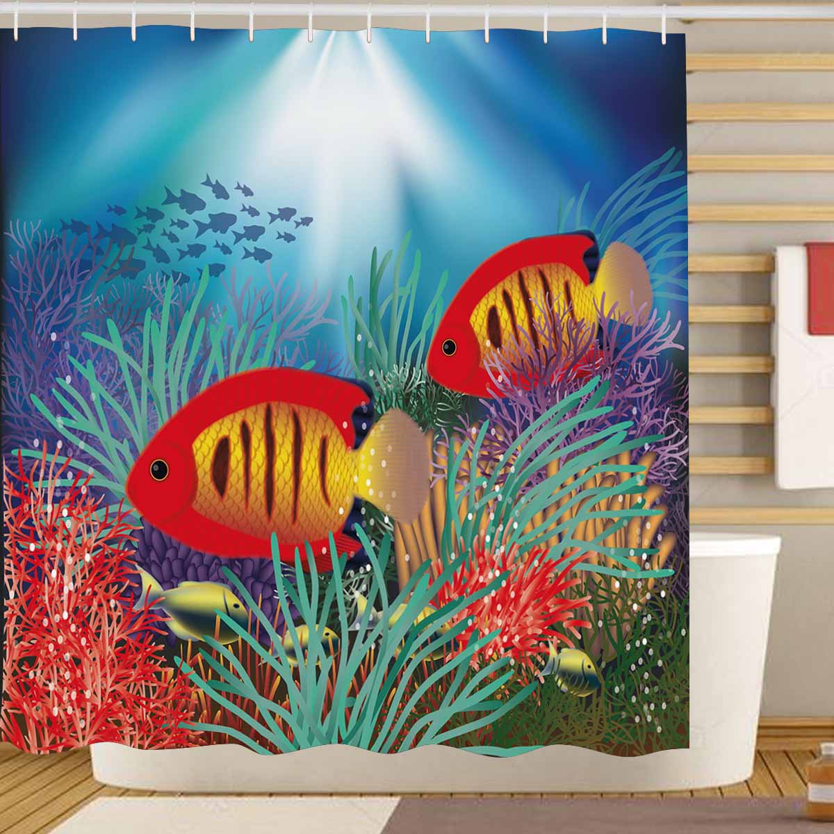 Seaworld themed print on shower curtains for bathroom, create a brilliant atmosphere in your bathroom, include a selection of different stylish and custom-made designs for your bath decoration.