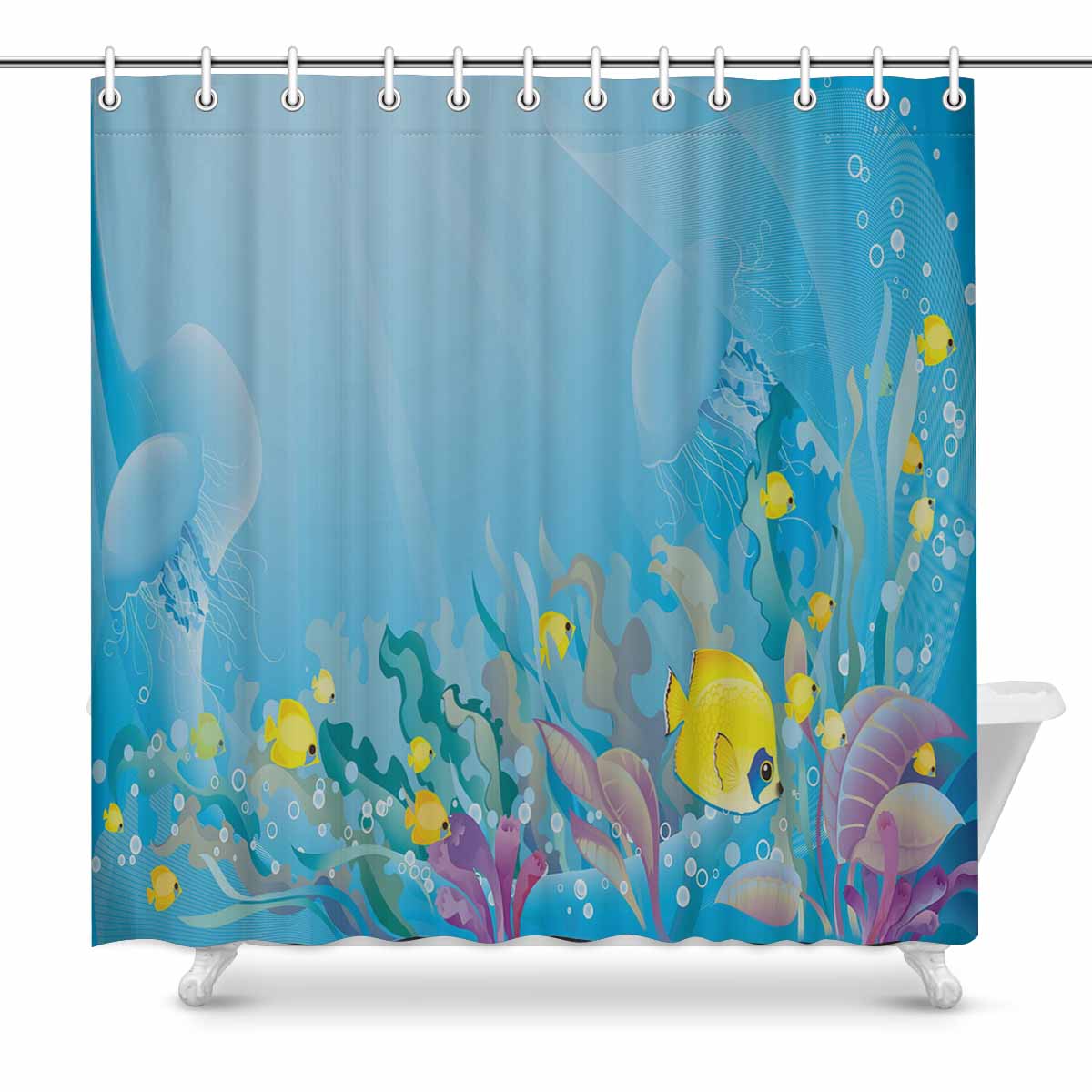 Seaworld themed print on shower curtains for bathroom, create a brilliant atmosphere in your bathroom, include a selection of different stylish and custom-made designs for your bath decoration.