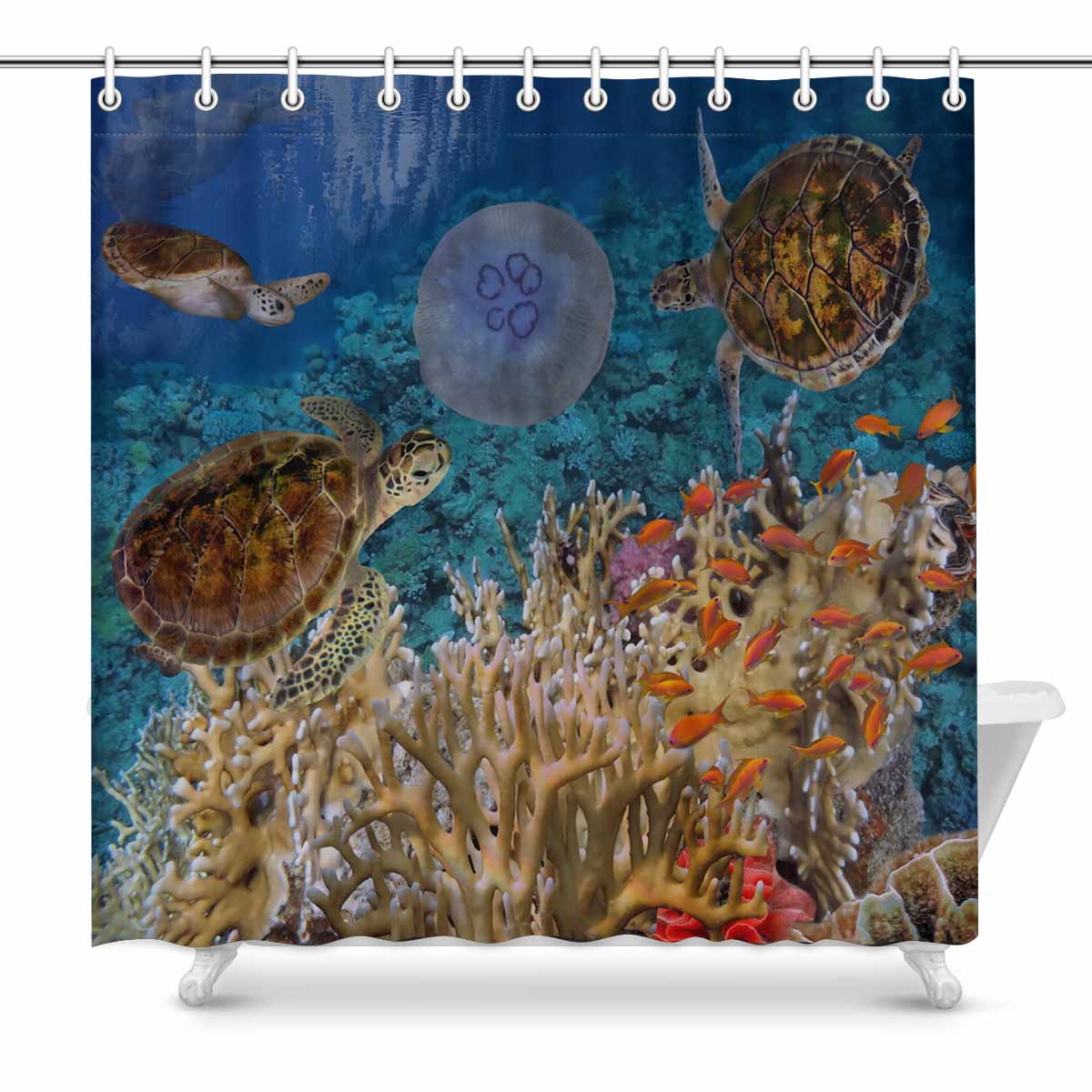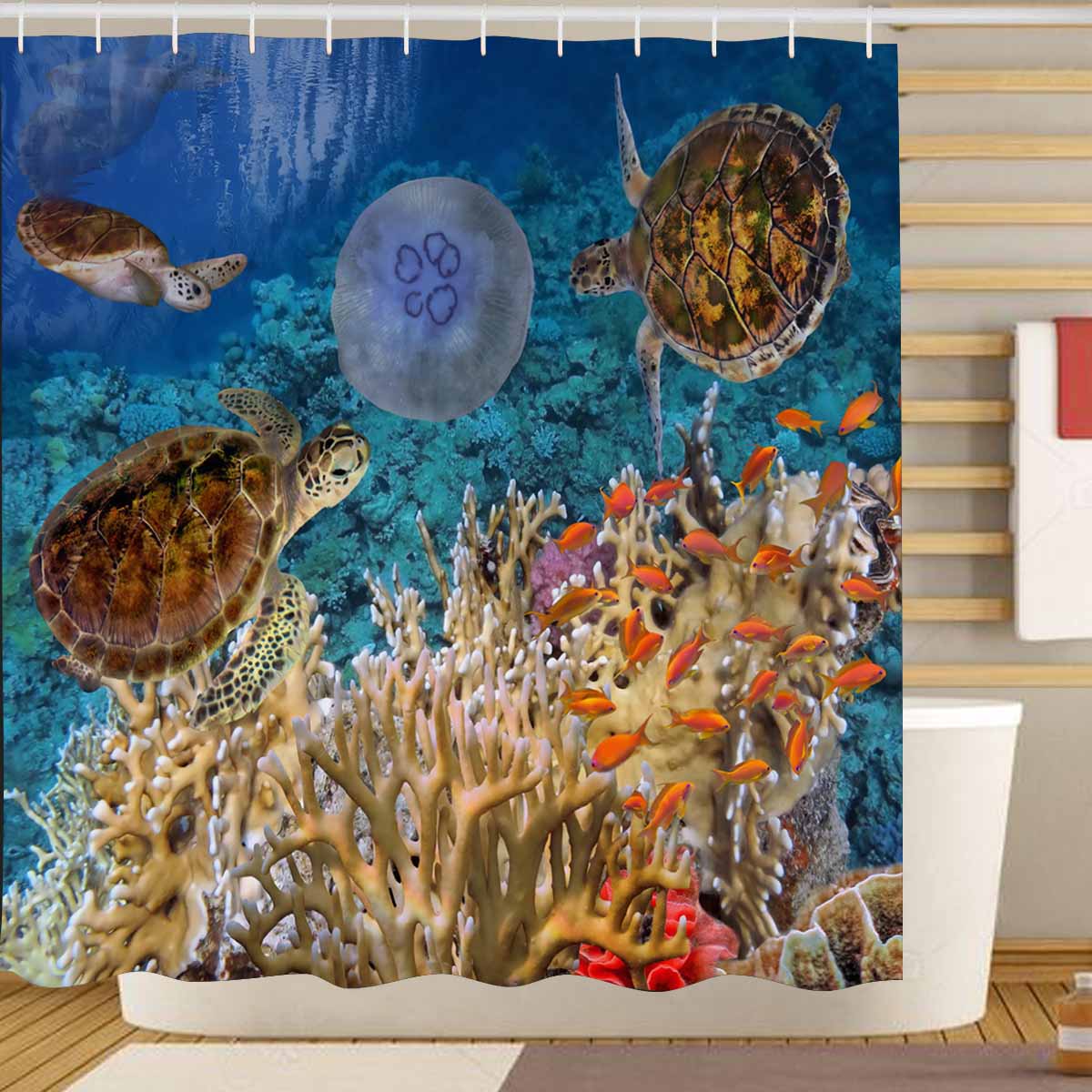 Seaworld themed print on shower curtains for bathroom, create a brilliant atmosphere in your bathroom, include a selection of different stylish and custom-made designs for your bath decoration.