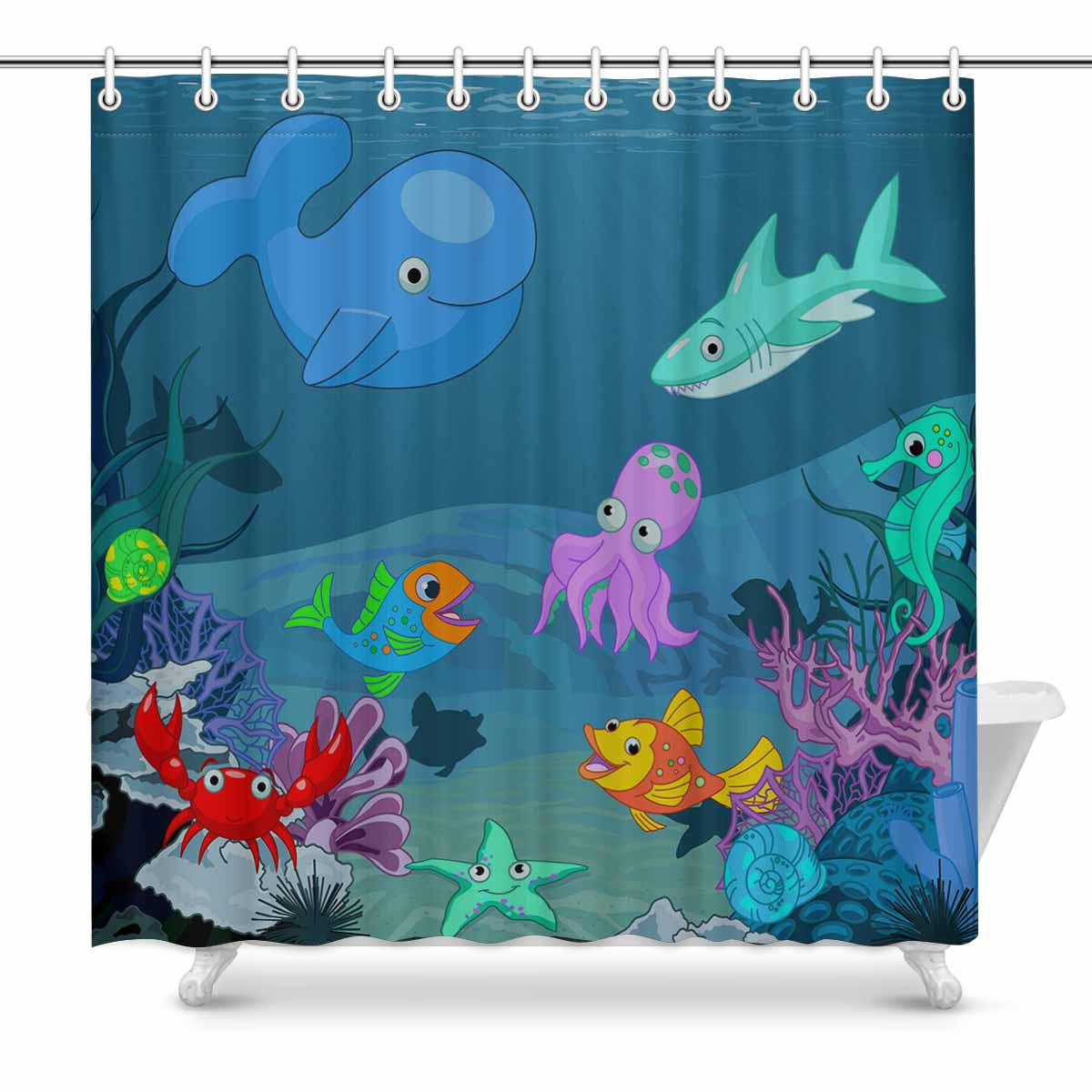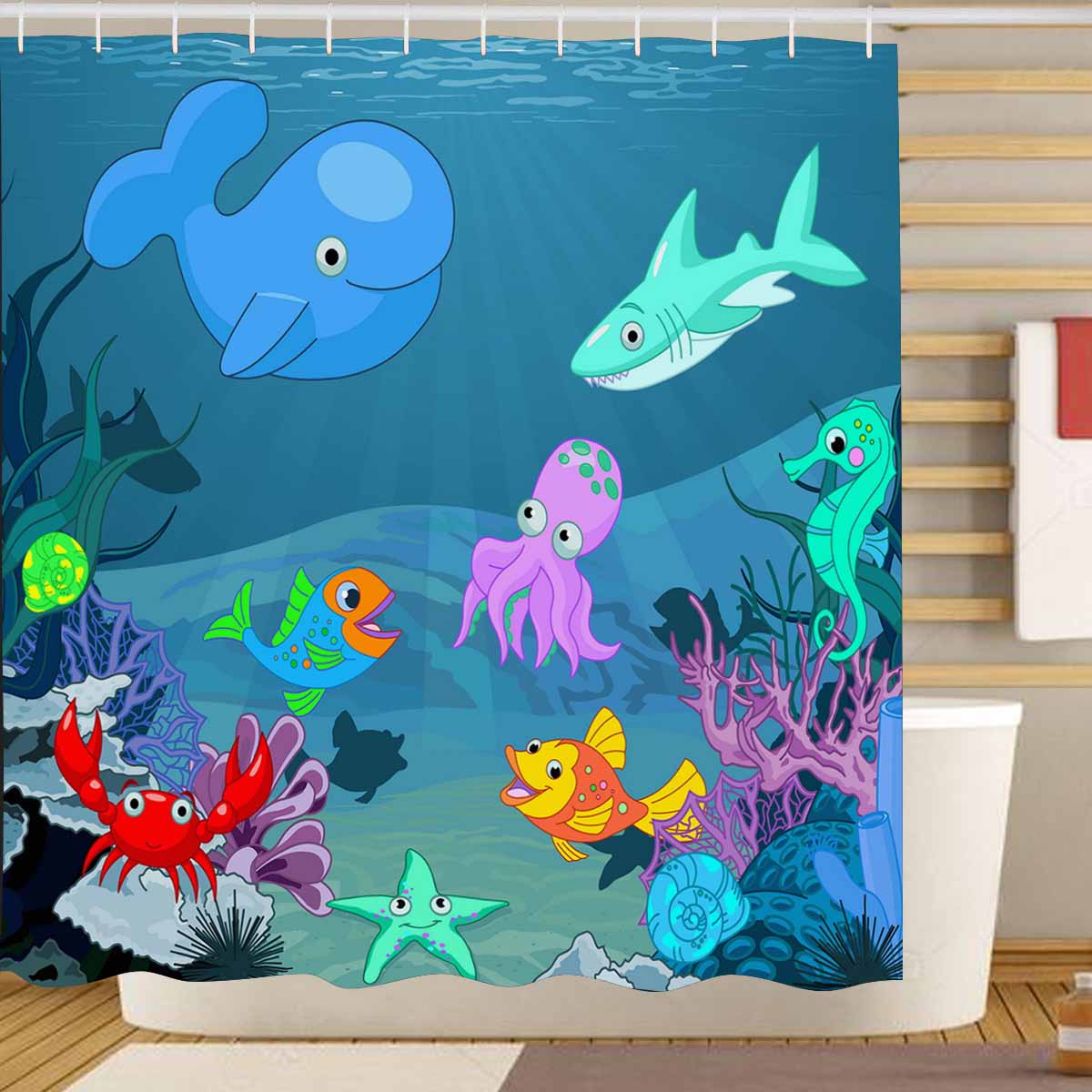 Seaworld themed print on shower curtains for bathroom, create a brilliant atmosphere in your bathroom, include a selection of different stylish and custom-made designs for your bath decoration.