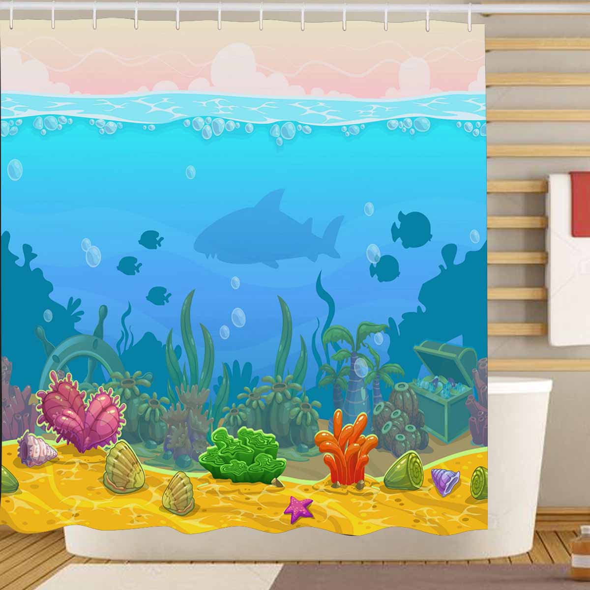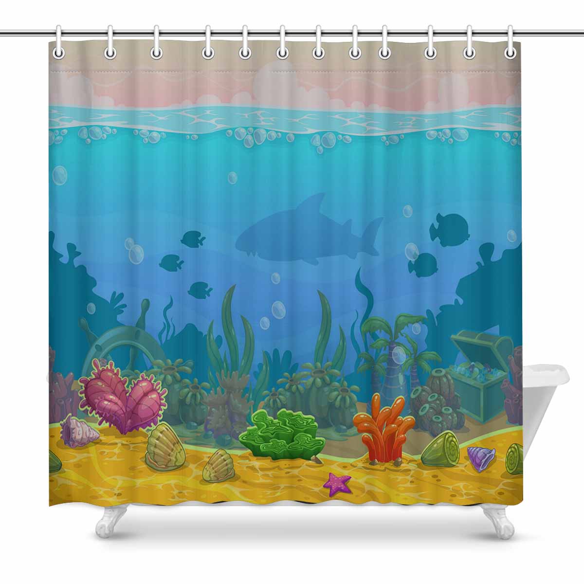 Seaworld themed print on shower curtains for bathroom, create a brilliant atmosphere in your bathroom, include a selection of different stylish and custom-made designs for your bath decoration.