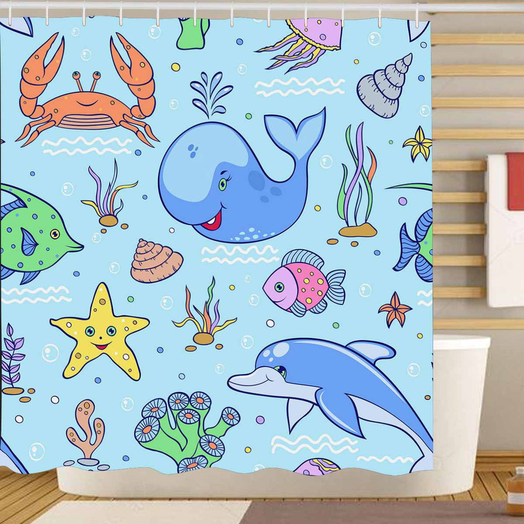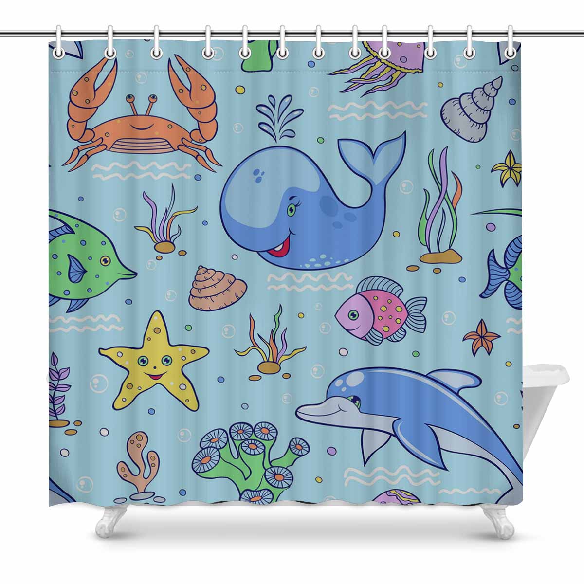 Seaworld themed print on shower curtains for bathroom, create a brilliant atmosphere in your bathroom, include a selection of different stylish and custom-made designs for your bath decoration.