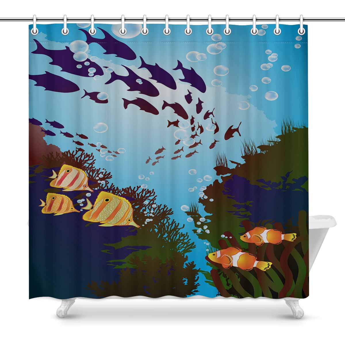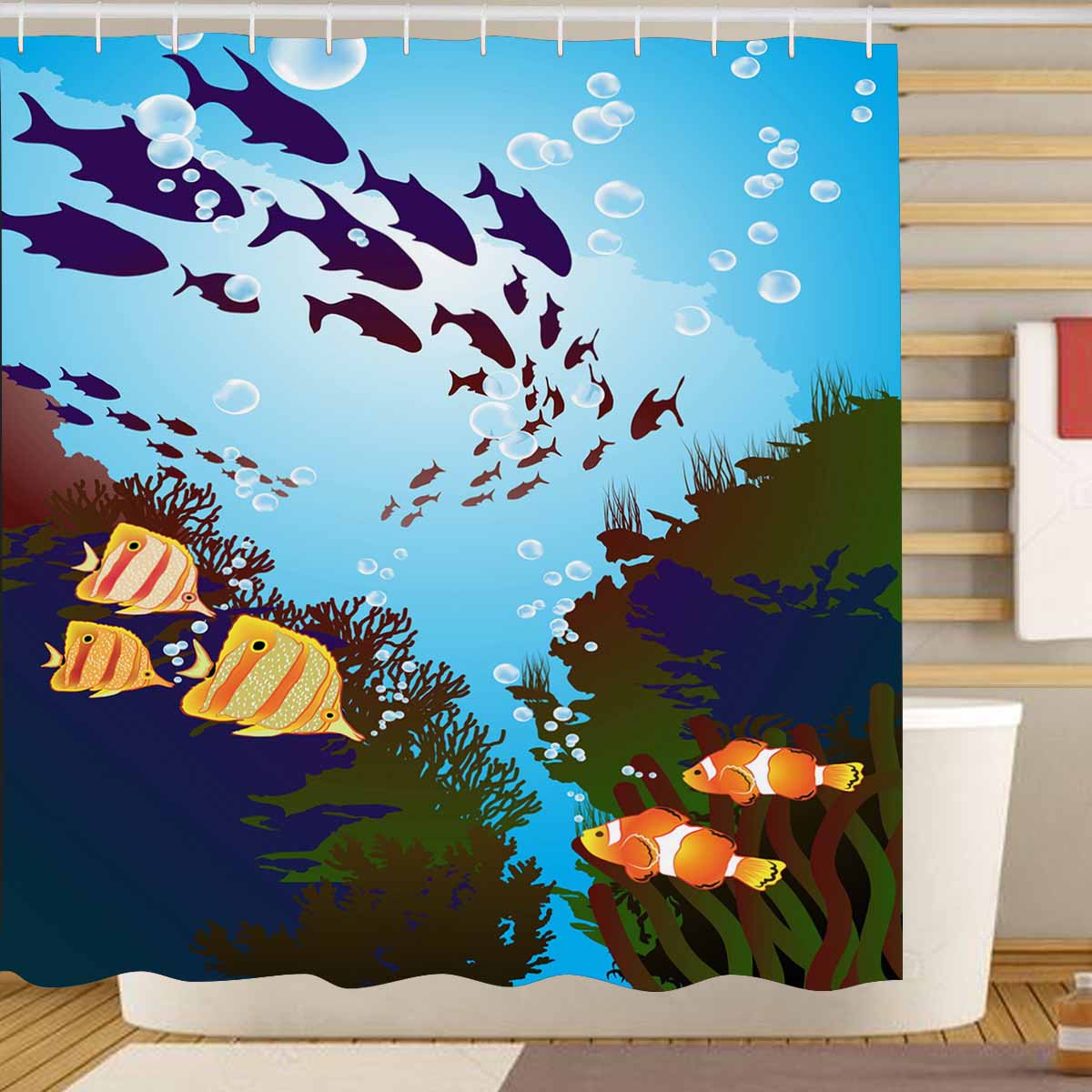 Seaworld themed print on shower curtains for bathroom, create a brilliant atmosphere in your bathroom, include a selection of different stylish and custom-made designs for your bath decoration.