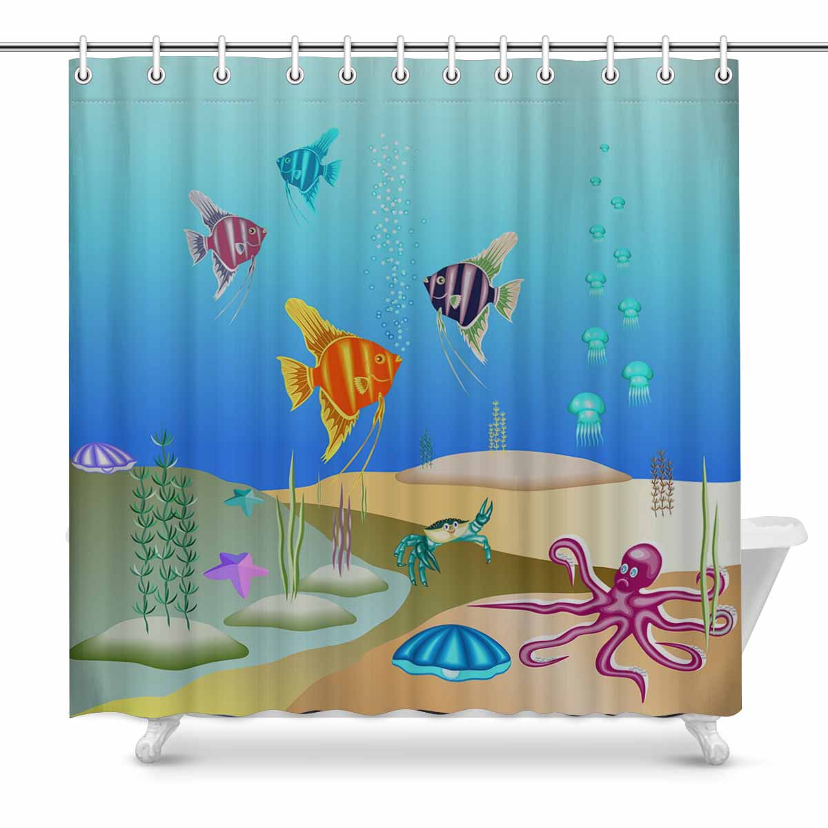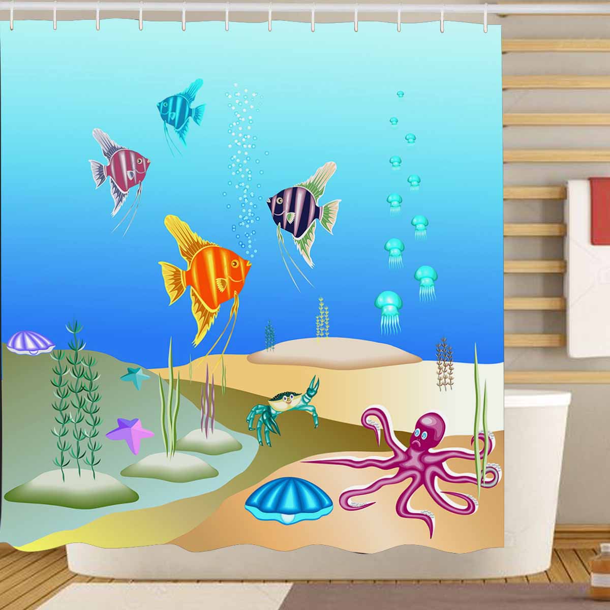Seaworld themed print on shower curtains for bathroom, create a brilliant atmosphere in your bathroom, include a selection of different stylish and custom-made designs for your bath decoration.