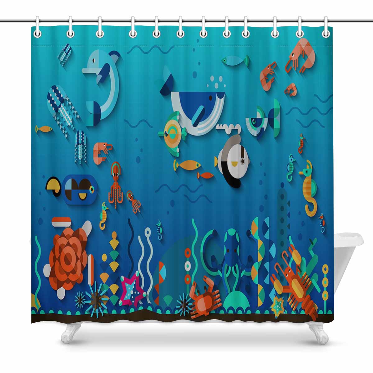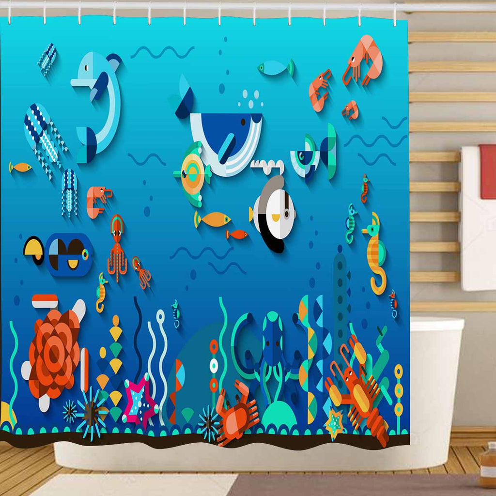 Seaworld themed print on shower curtains for bathroom, create a brilliant atmosphere in your bathroom, include a selection of different stylish and custom-made designs for your bath decoration.