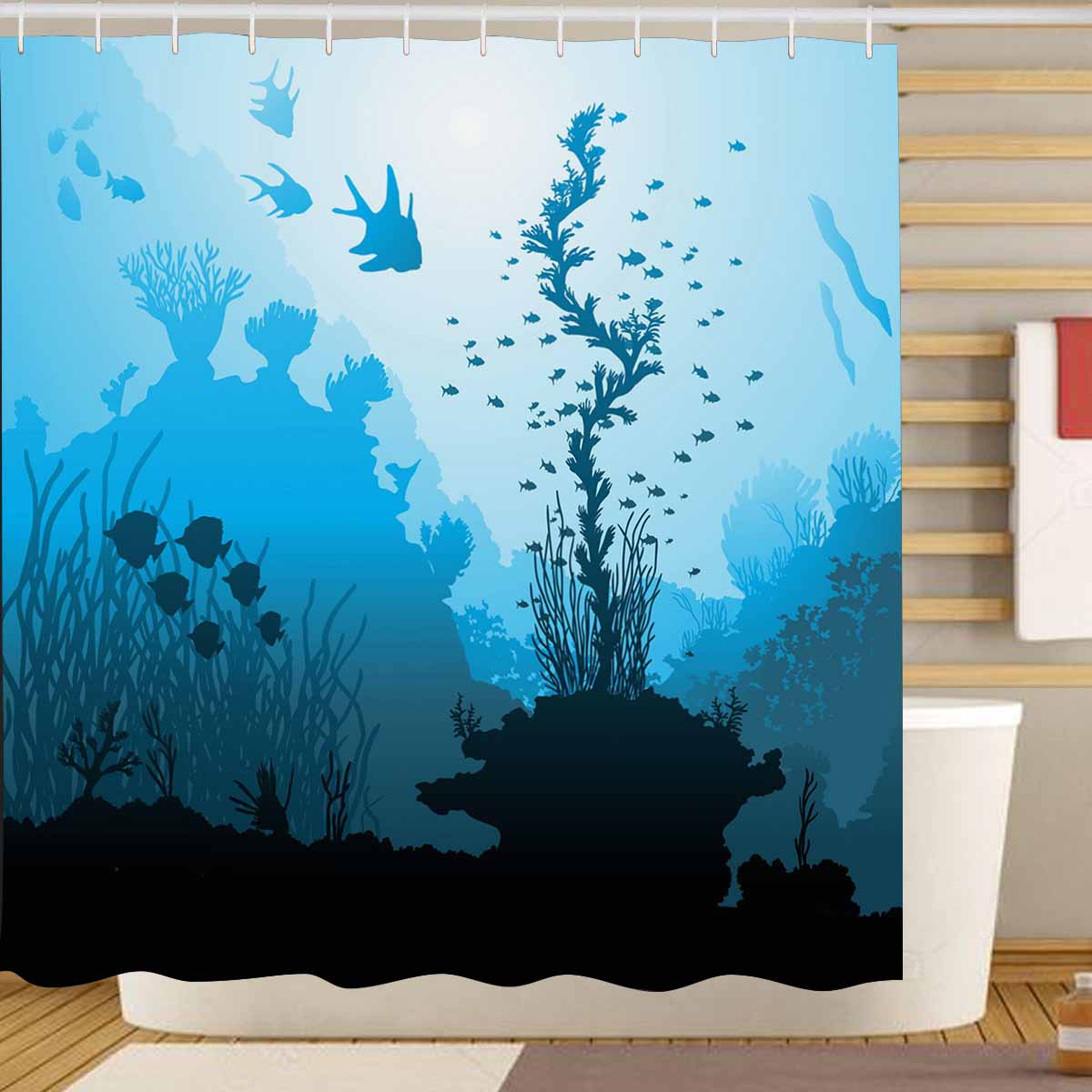 Seaworld themed print on shower curtains for bathroom, create a brilliant atmosphere in your bathroom, include a selection of different stylish and custom-made designs for your bath decoration.
