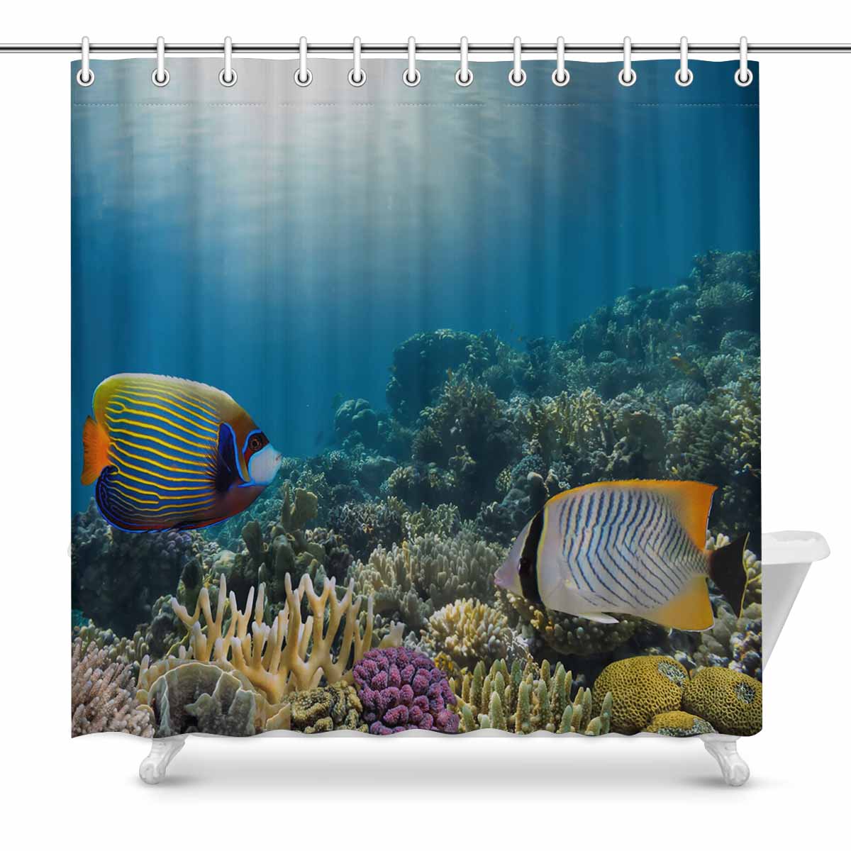 Seaworld themed print on shower curtains for bathroom, create a brilliant atmosphere in your bathroom, include a selection of different stylish and custom-made designs for your bath decoration.