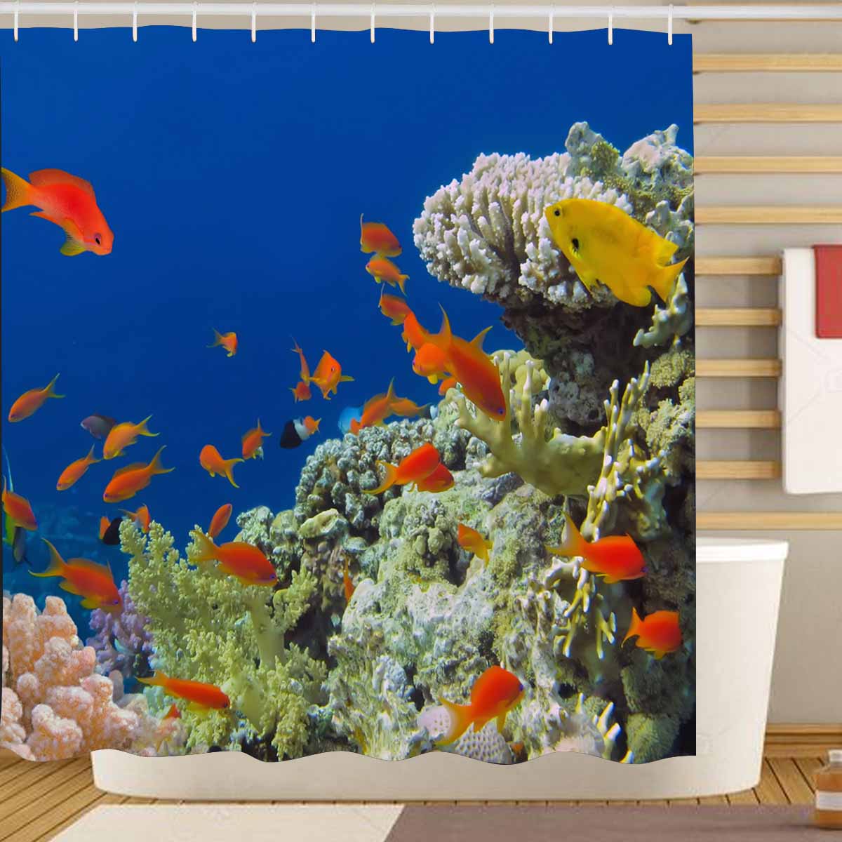 Seaworld themed print on shower curtains for bathroom, create a brilliant atmosphere in your bathroom, include a selection of different stylish and custom-made designs for your bath decoration.