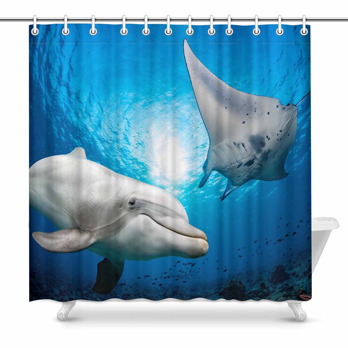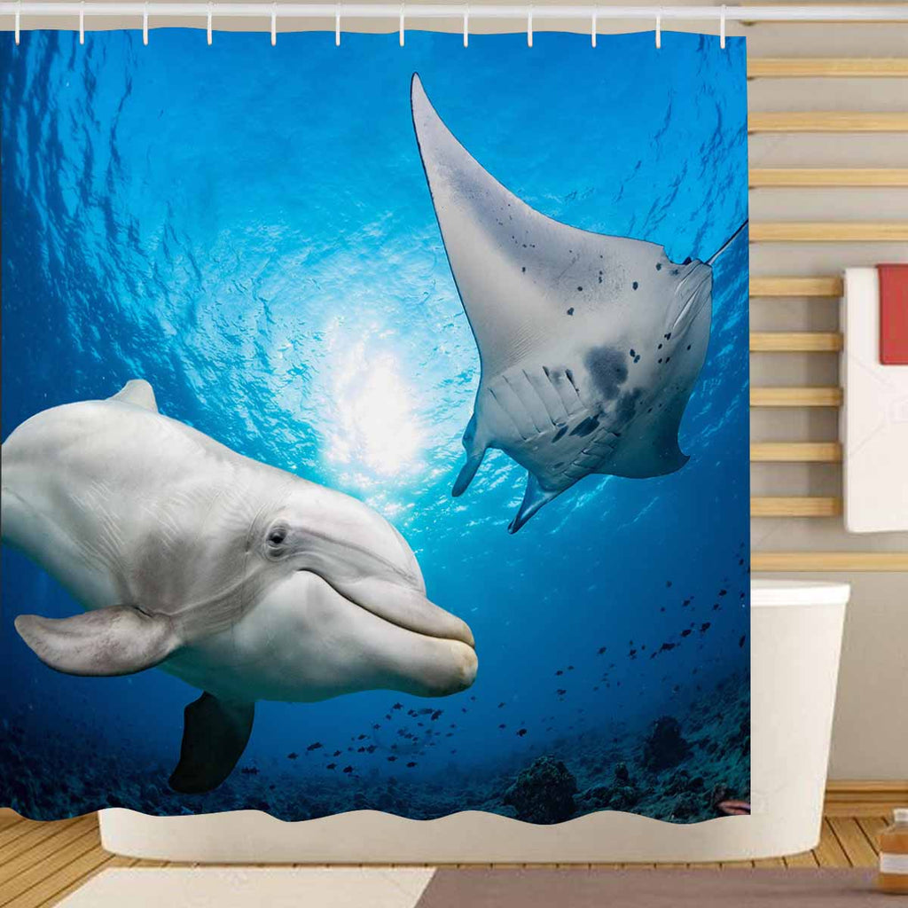 Tropical themed Shower Curtains Dolphin underwater meets a manta