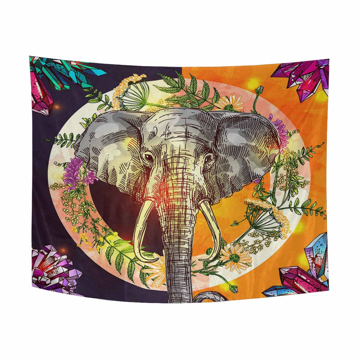 Animals themed Wall Tapestries print with boho style illustration portrait of elephant