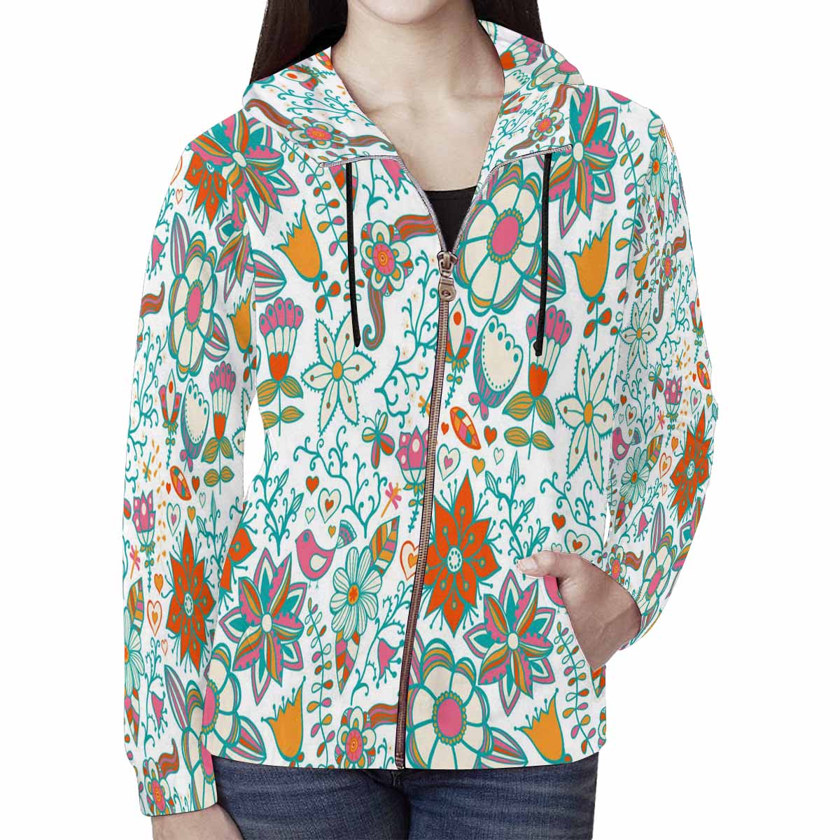 Women's Full Zip Hoodies print with graphic flowers butterflies