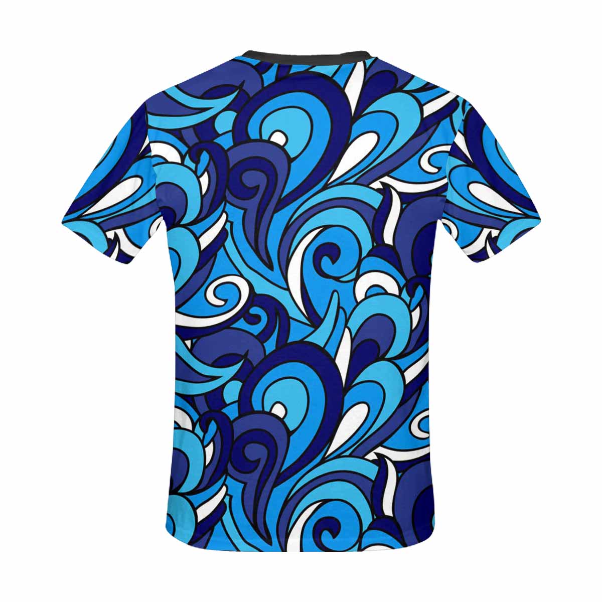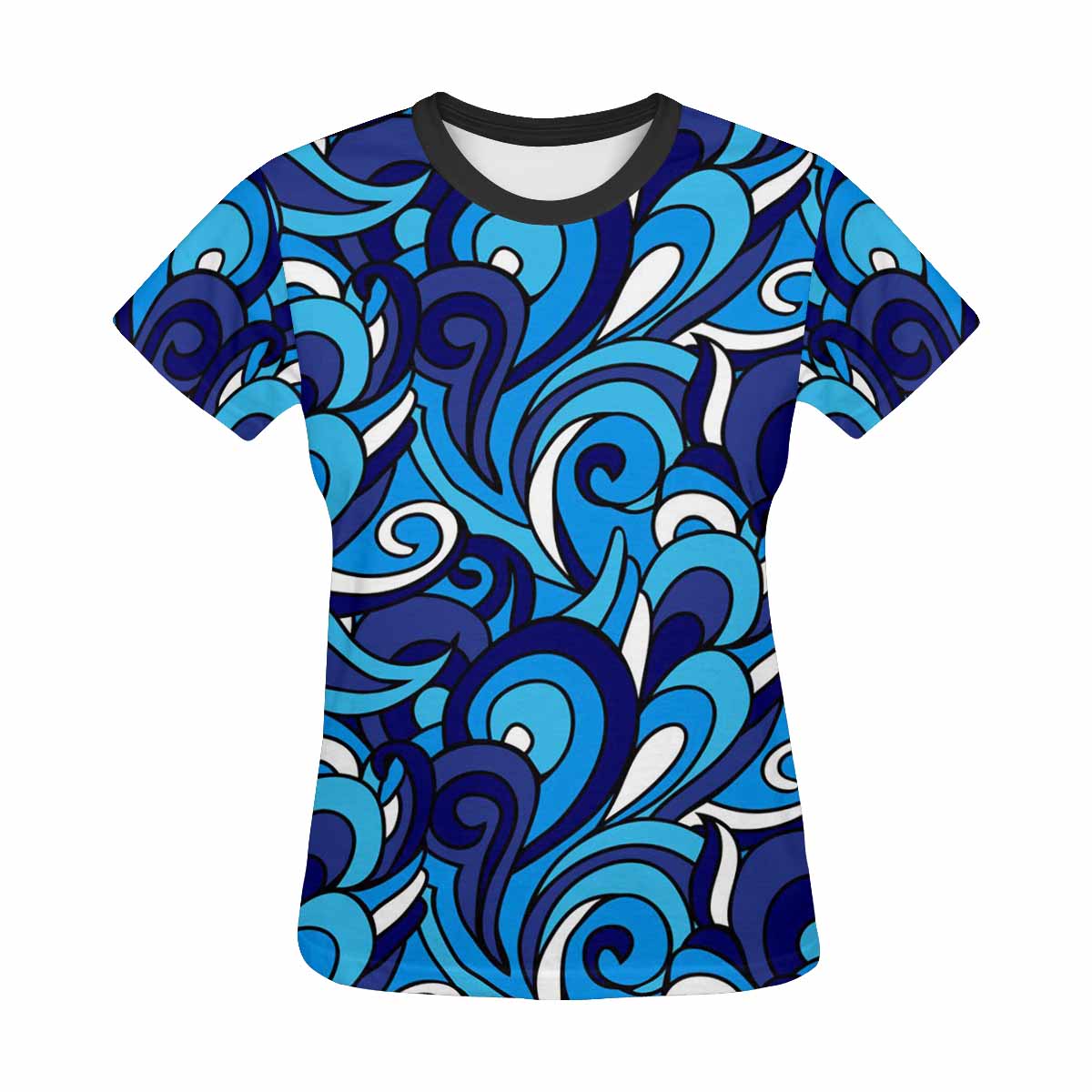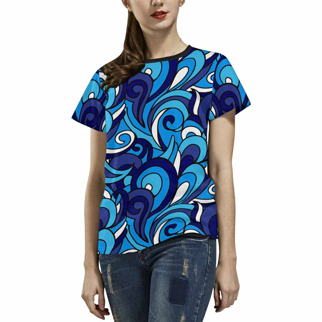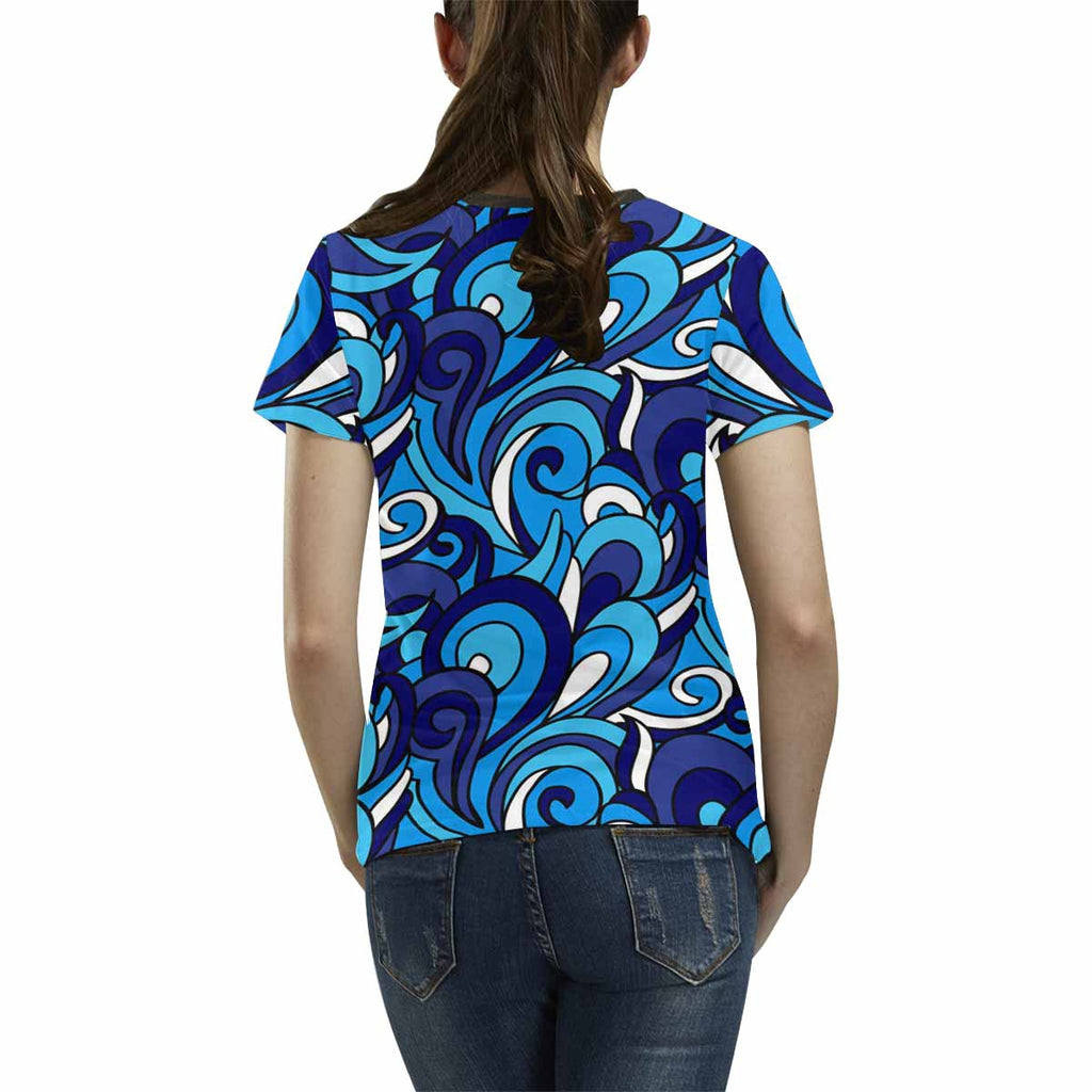Womens graphic T-Shirts print with blue abstract swirl pattern