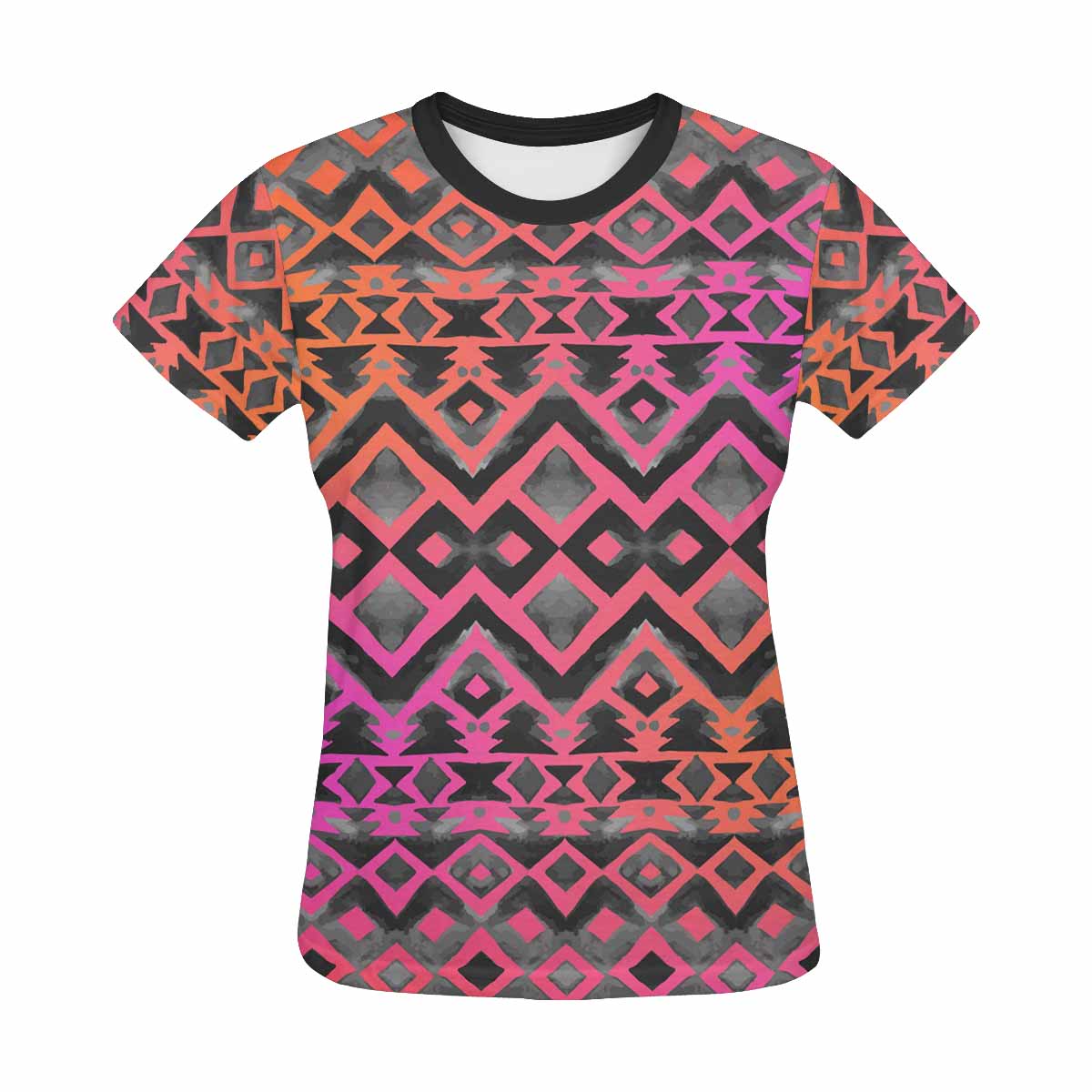 Womens graphic T-Shirts print with purple Aztec tribal mexican pattern