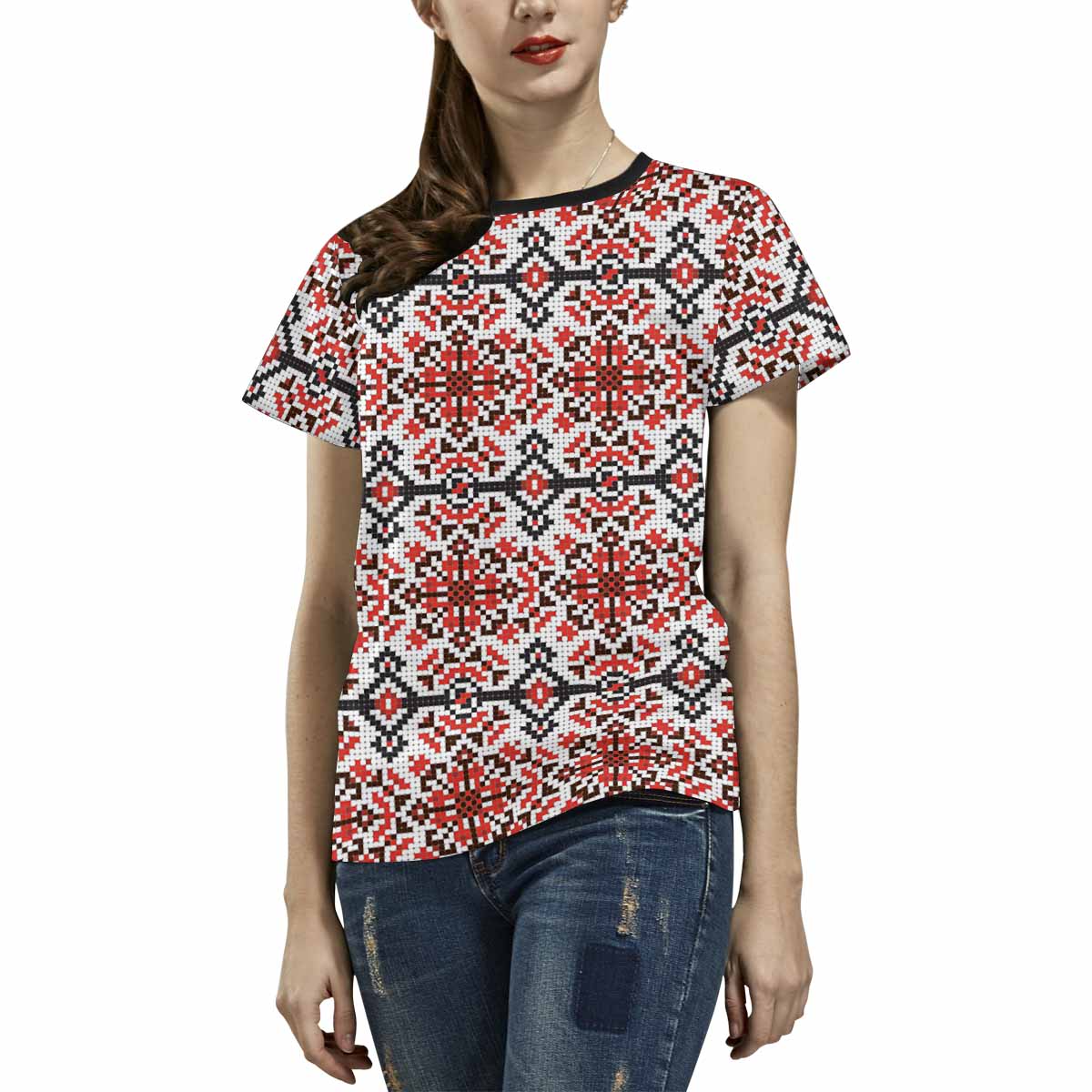Womens graphic T-Shirts print with Ukrainian folk art pattern