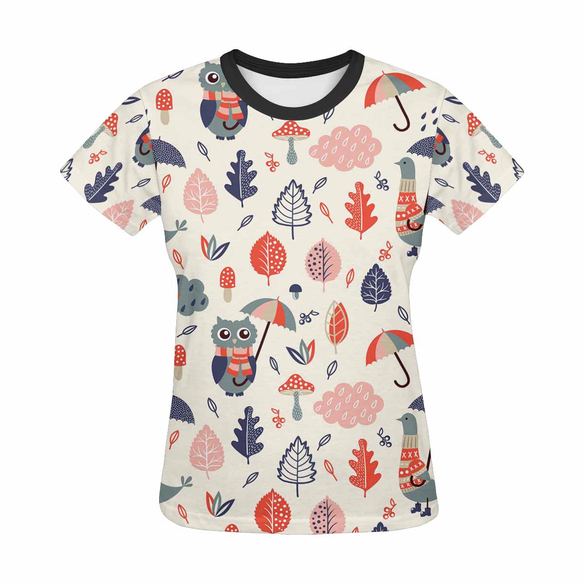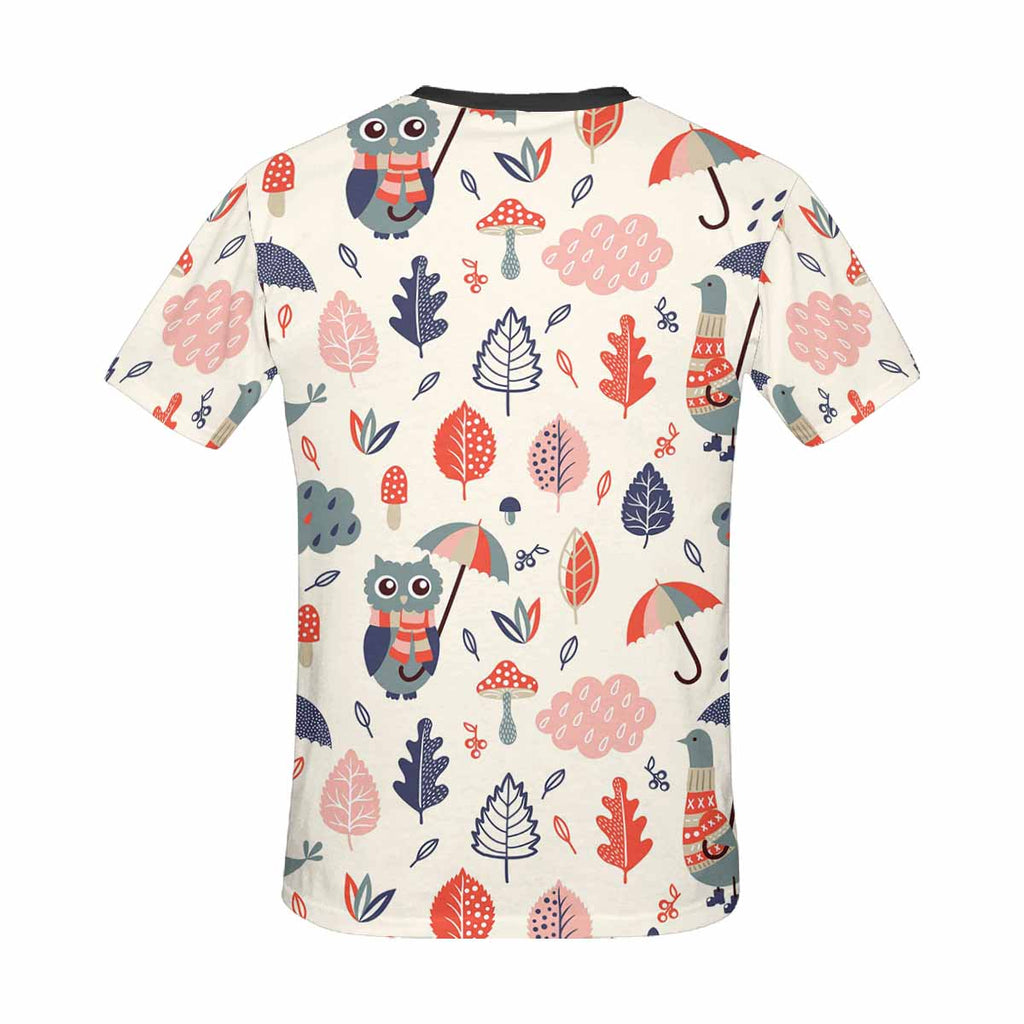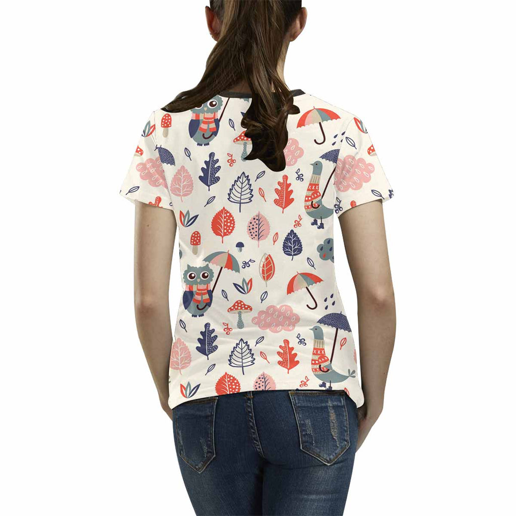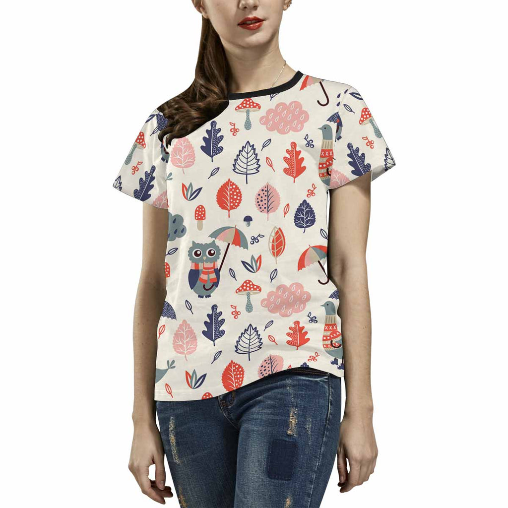 Womens tops t-shirts print with Autumn flowers owls