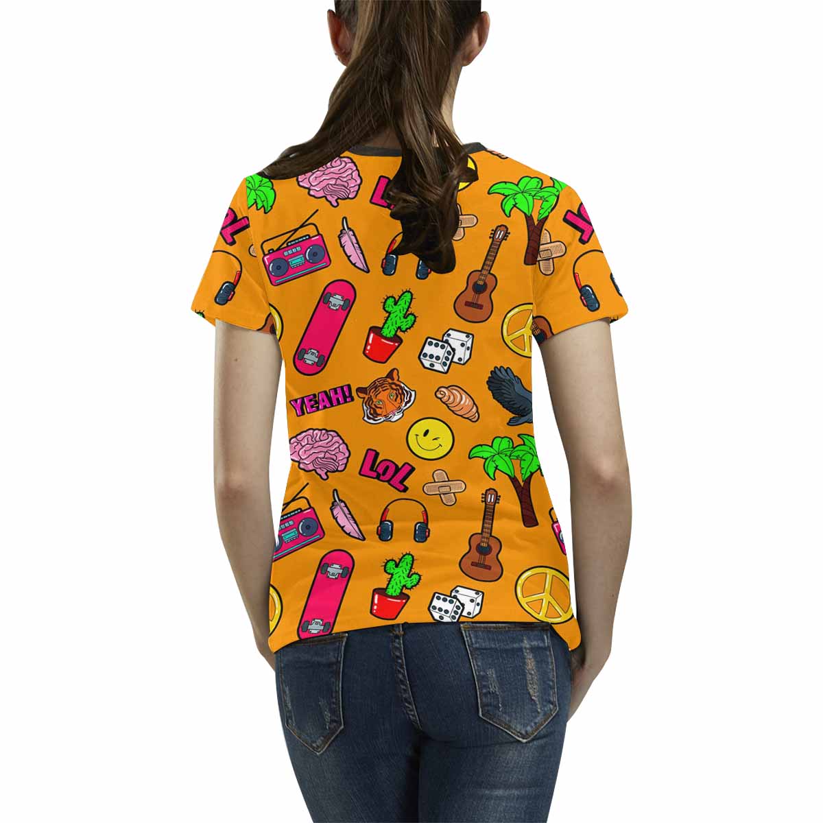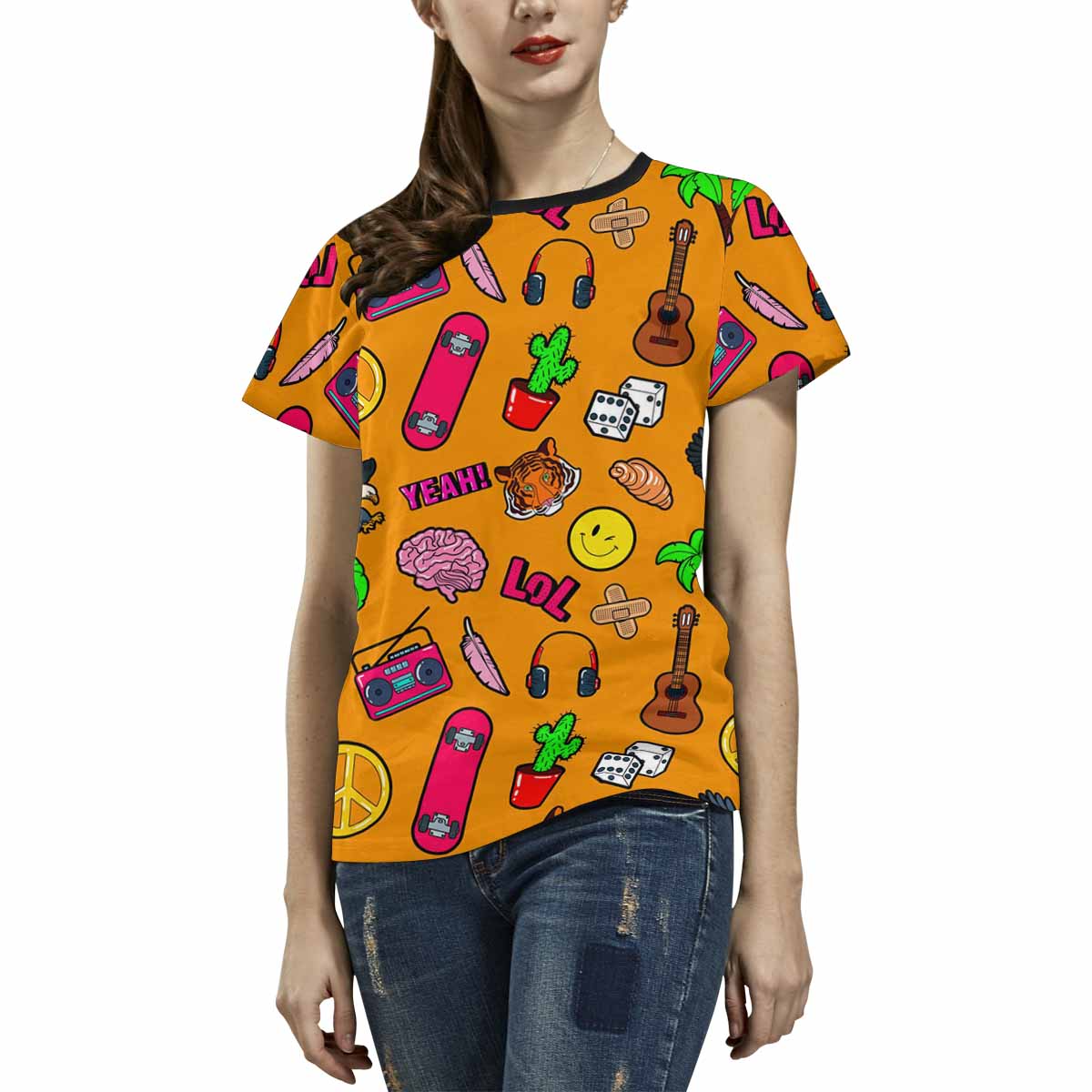 - 10.23 Oz. Polyester fabric. Dye-sublimation printing, Personalized all-over print T-shirt for women.