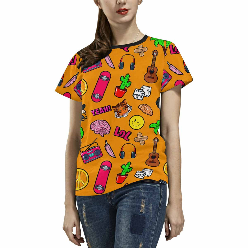Womens tops t-shirts print with Comic style pattern