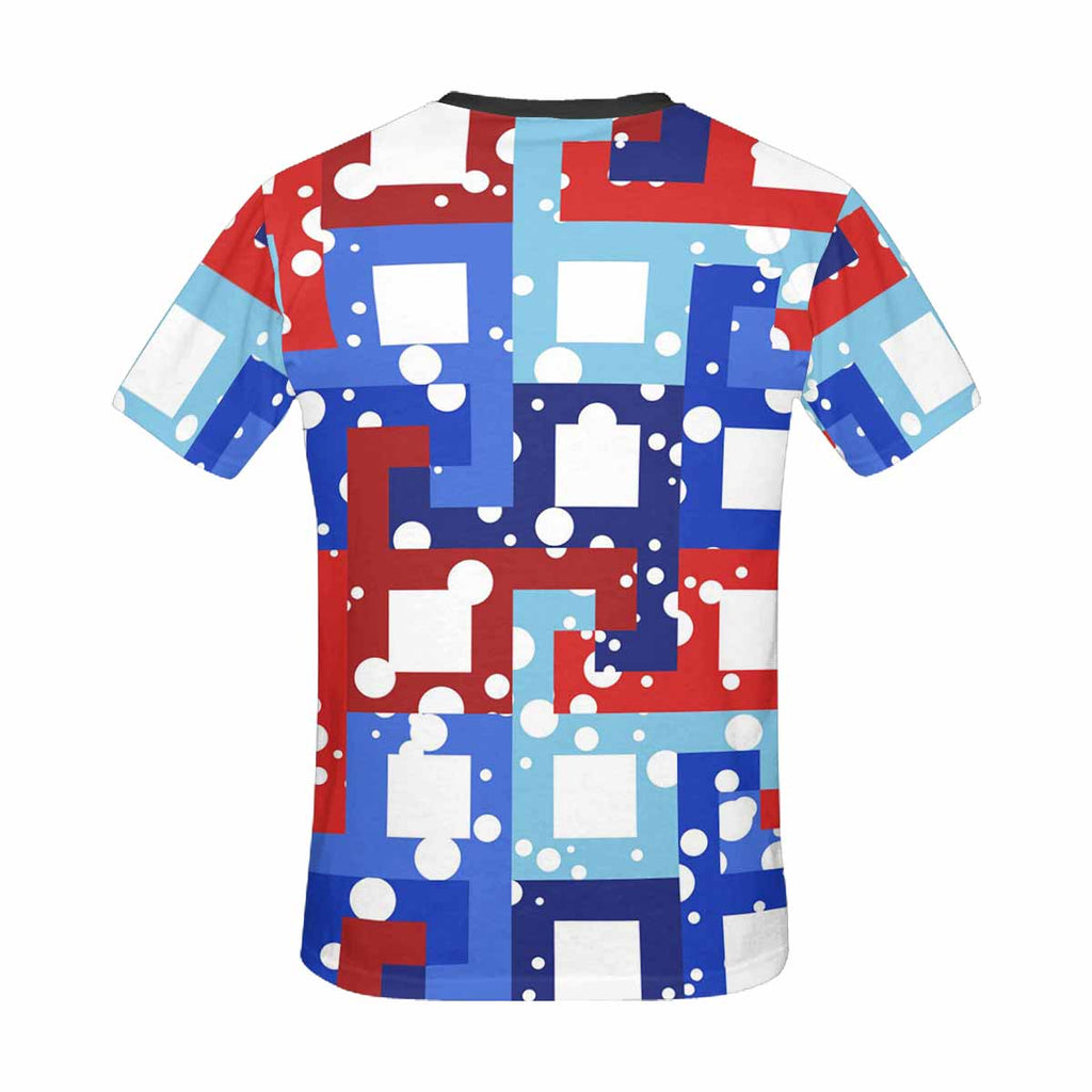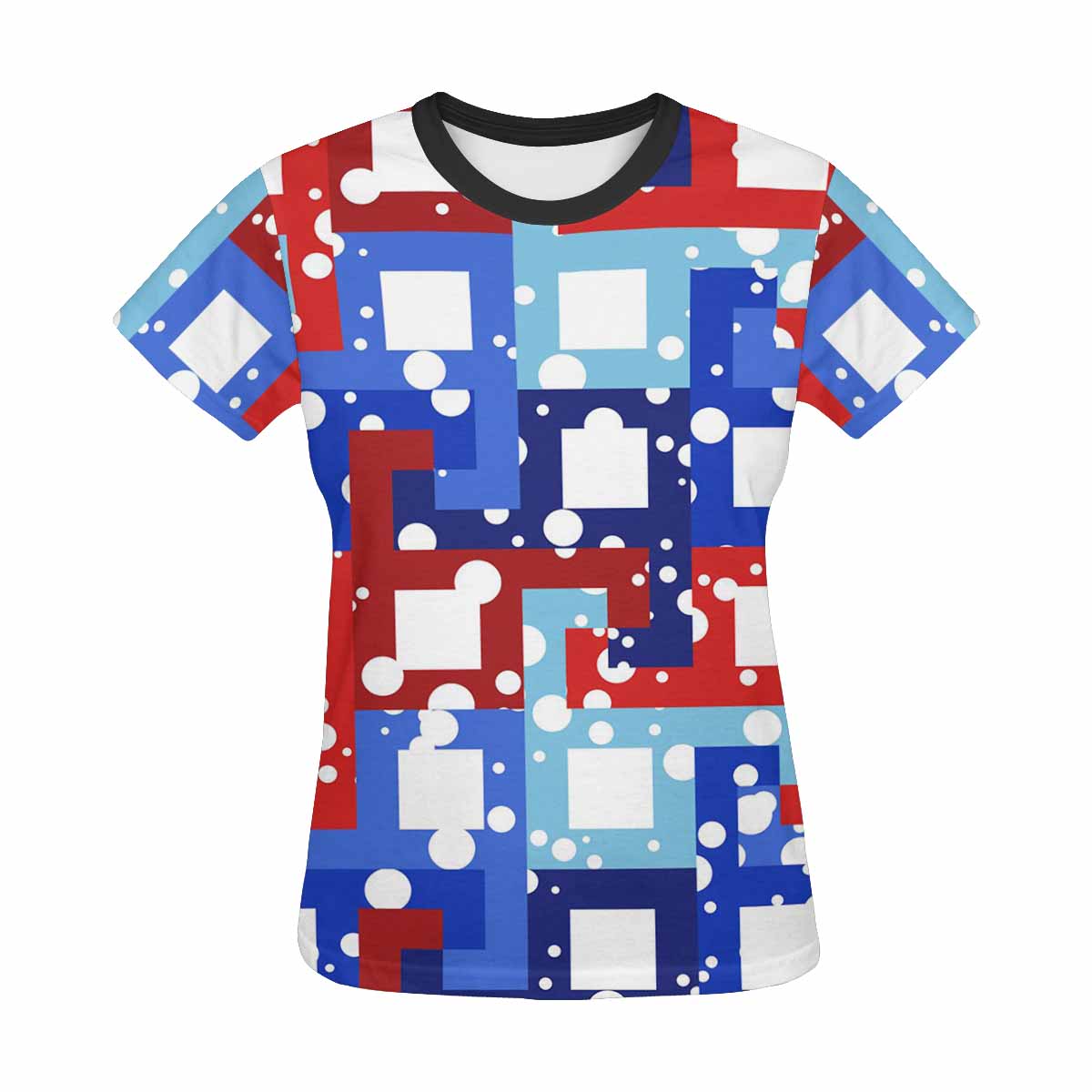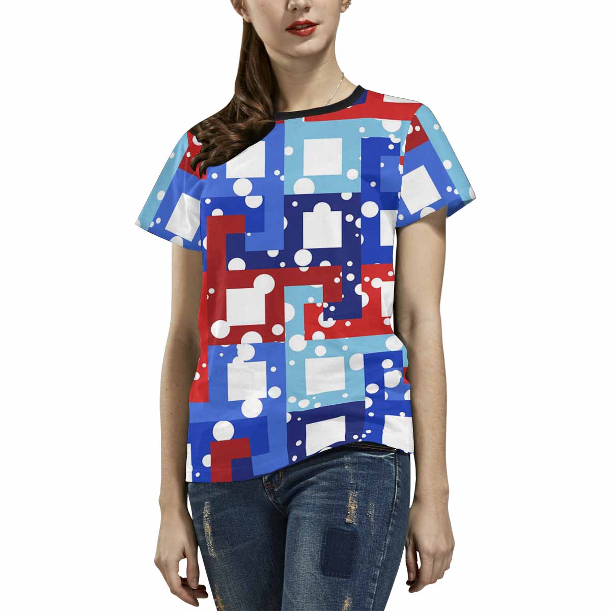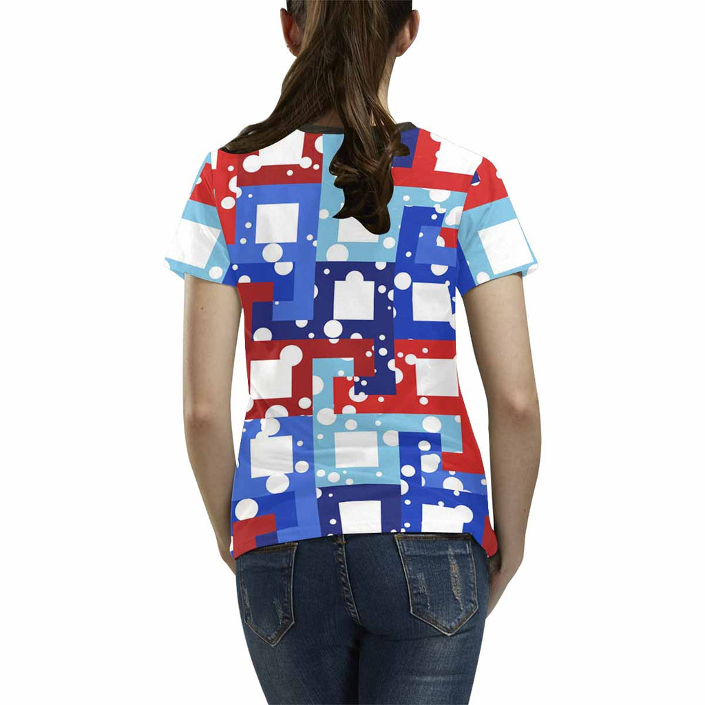Womens tops t-shirts print with Pattern with red and blue squares