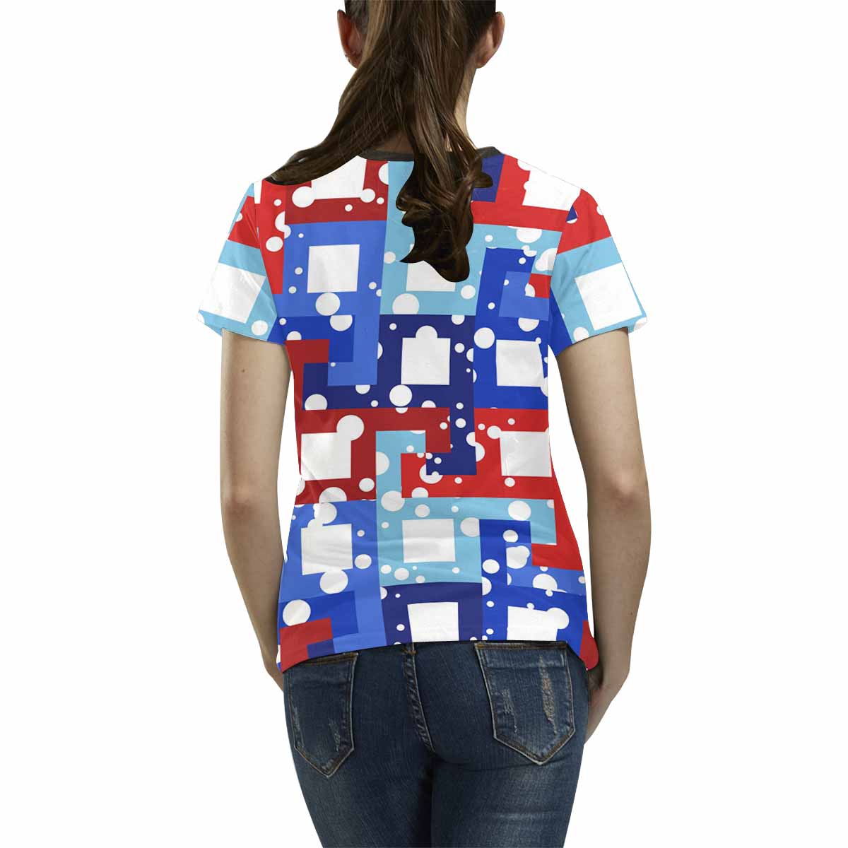 - 10.23 Oz. Polyester fabric. Dye-sublimation printing, Personalized all-over print T-shirt for women.