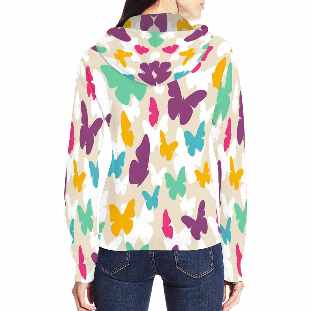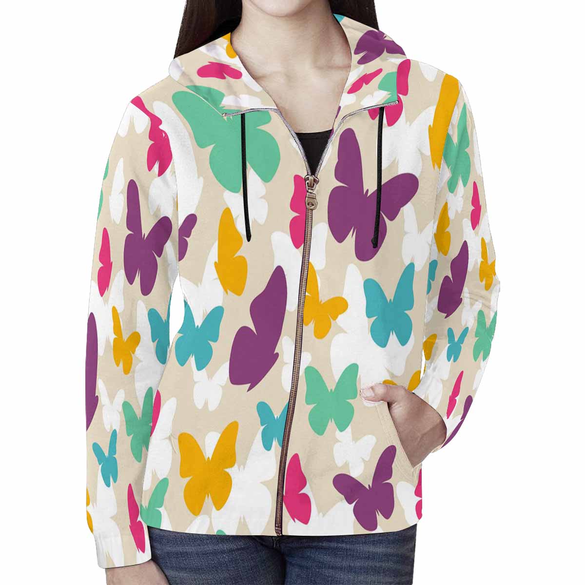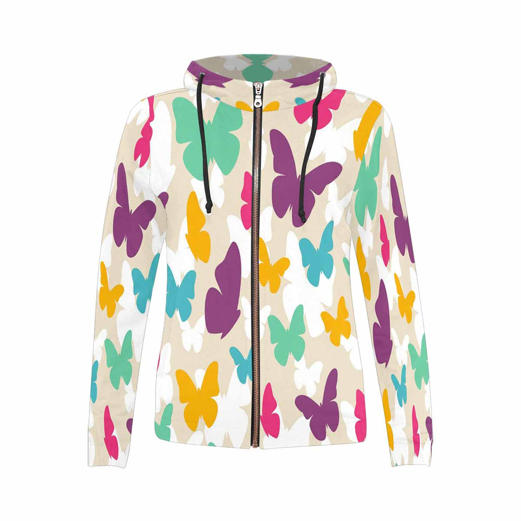 Women's Full Zip Hoodies print with colorful retro Butterfly