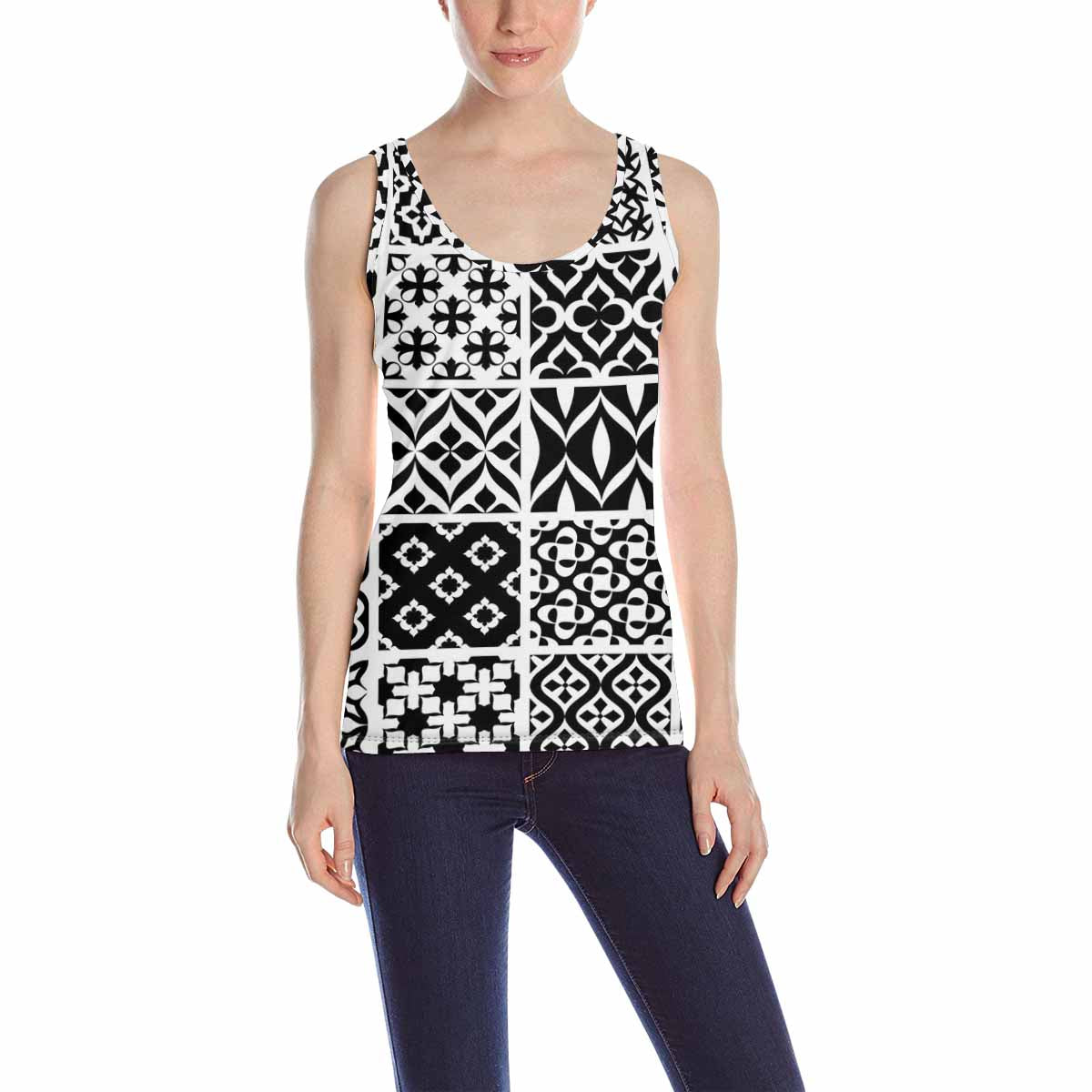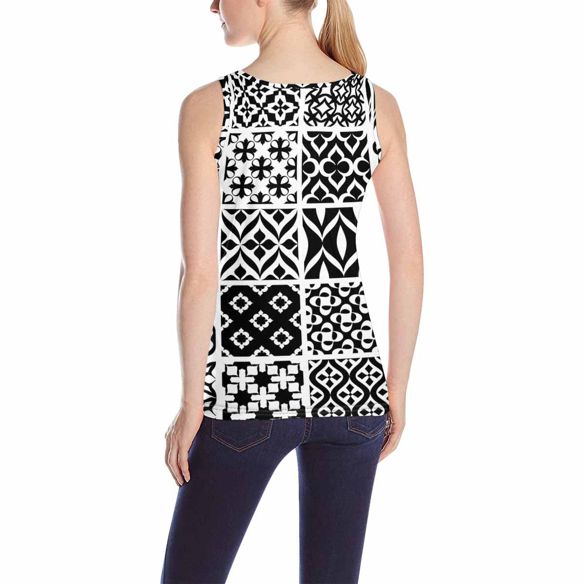 Womens Tank Tops print with black white set pattern