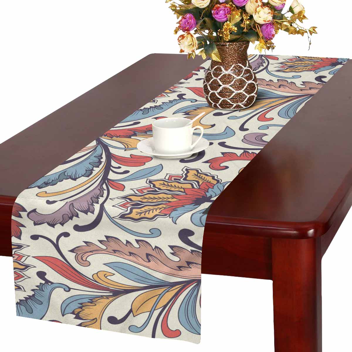Zenzzle Table Runner 16in*72in print with retro floral pattern