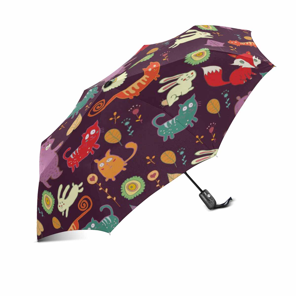 Autumn forest cute animals pattern travel umbrella automatic windproof foldable
