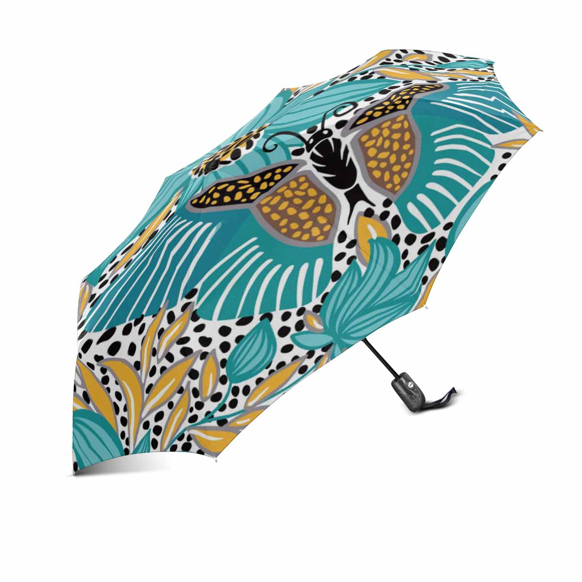 blue Pattern with flowers and butterflies totes umbrella automatic windproof foldable