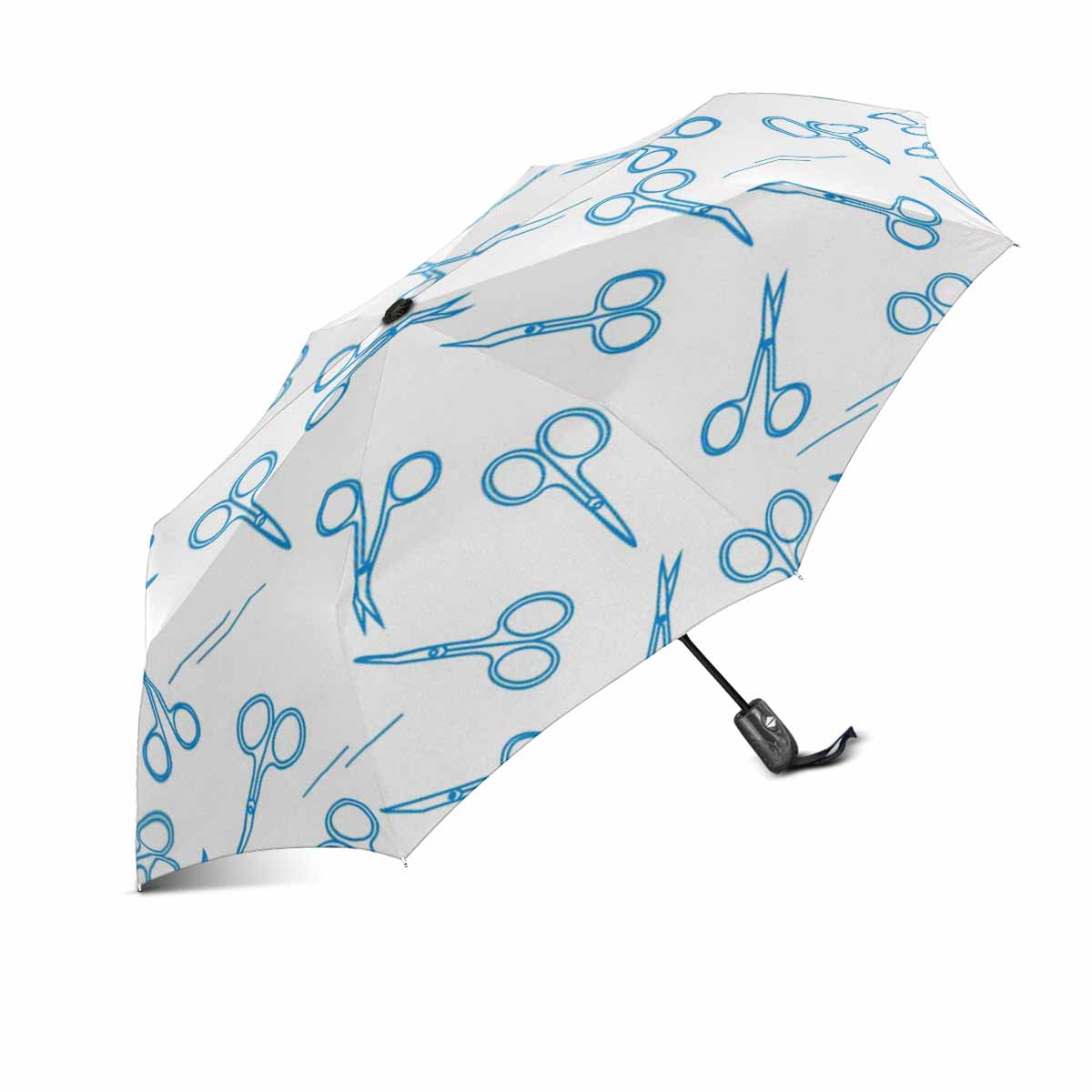 cute blue scissors pattern automatic umbrella foldable with totes