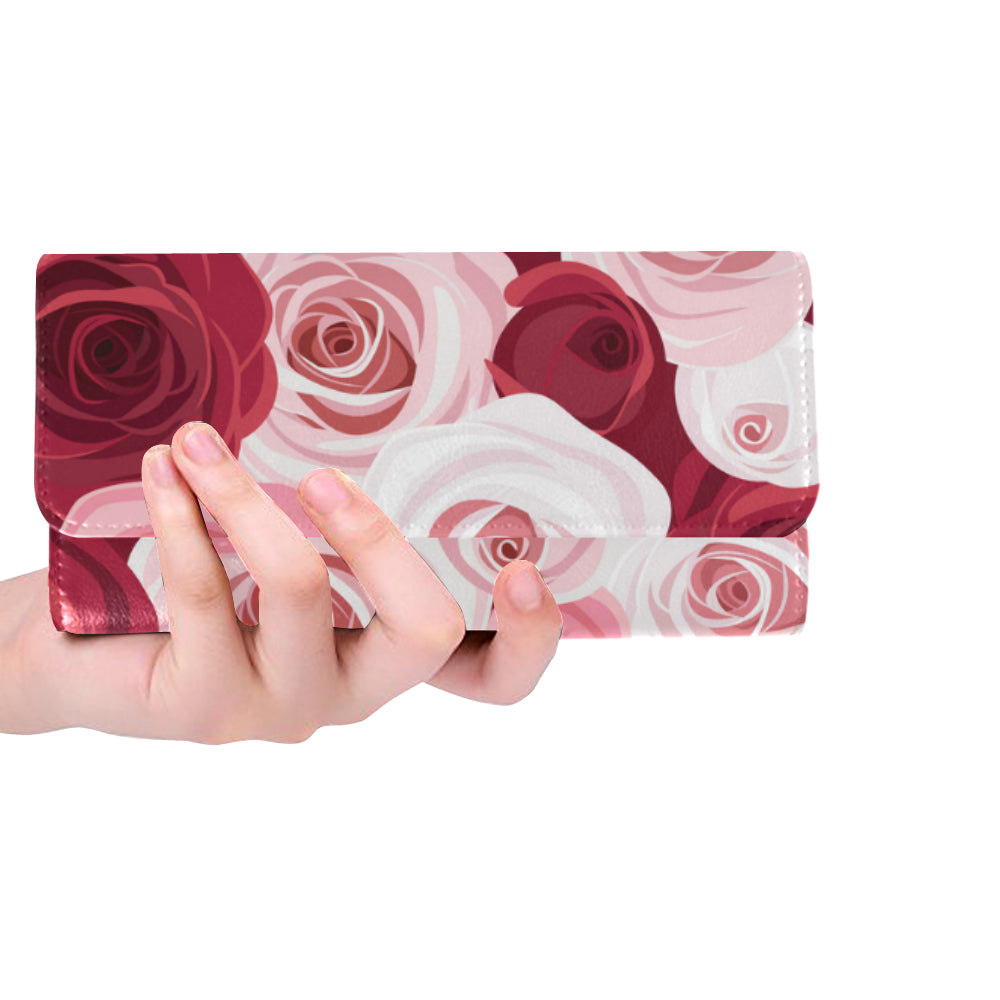 ladies trifold wallet bright rose flowers Spring doodles pattern print on women wallets 1