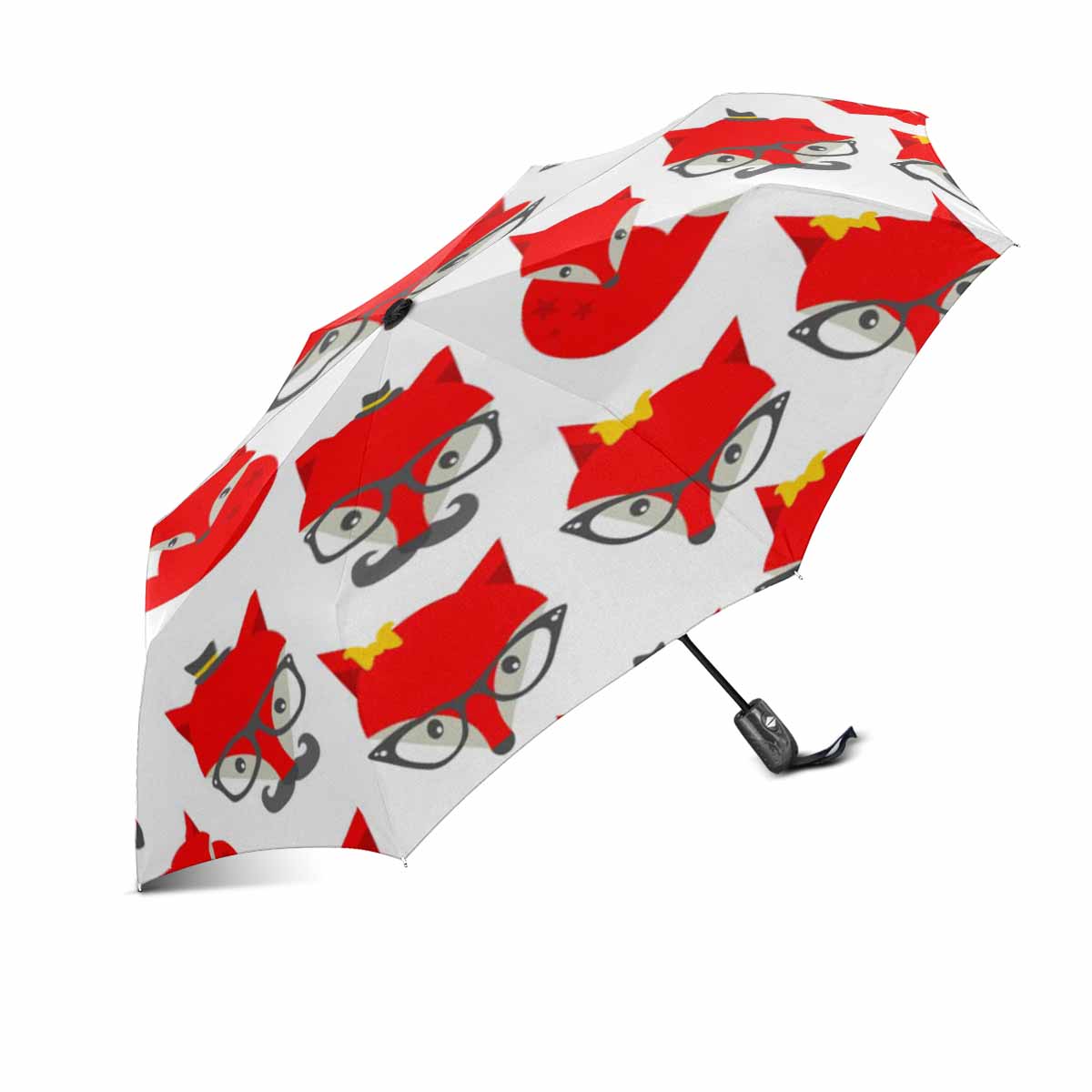 pattern with hipster fox travel umbrella automatic windproof foldable