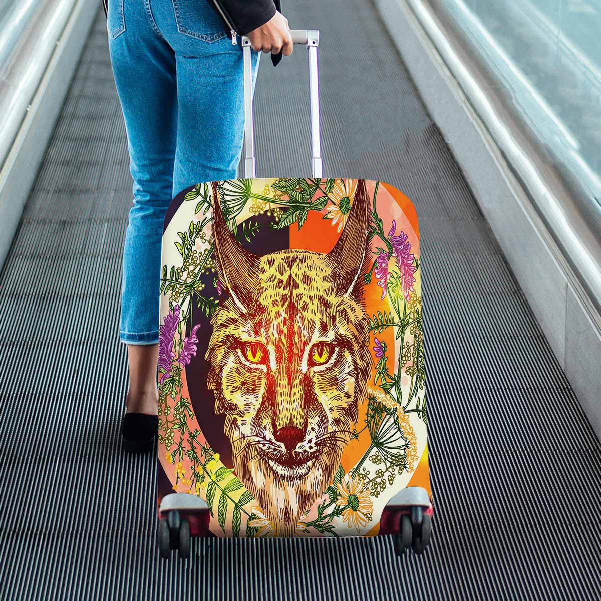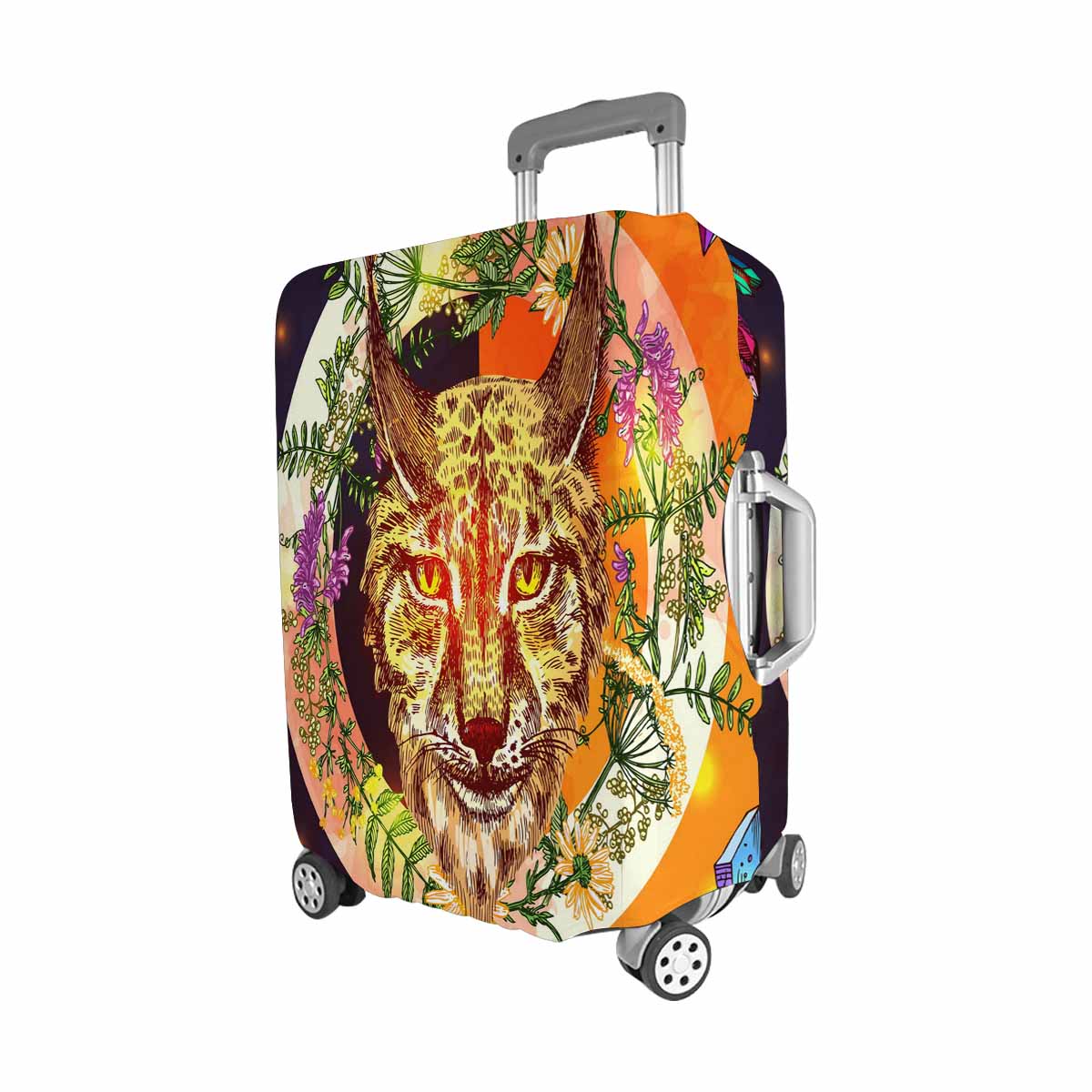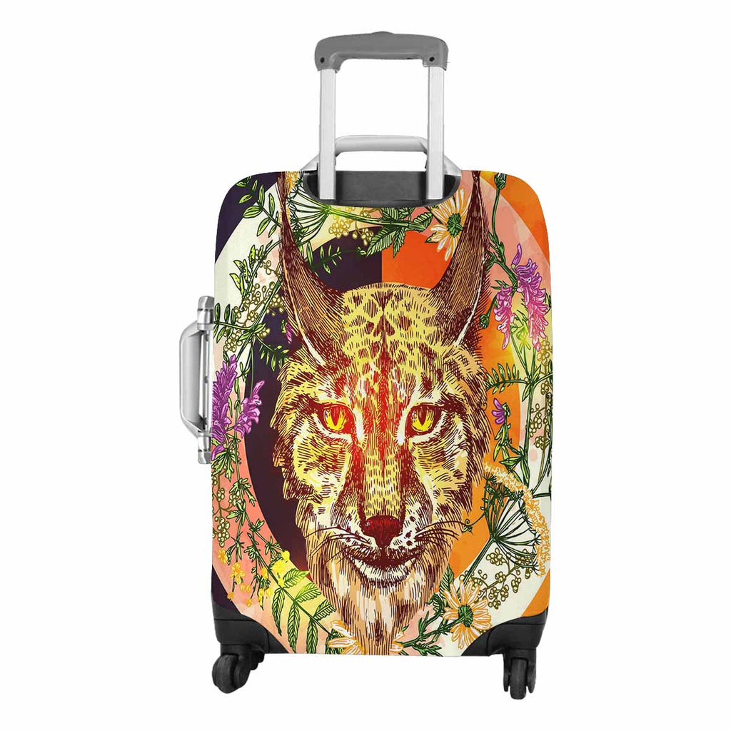 Animals themed Cover for Luggage suitcase printed Boho style illustration with lynx wildflowers and crystal
