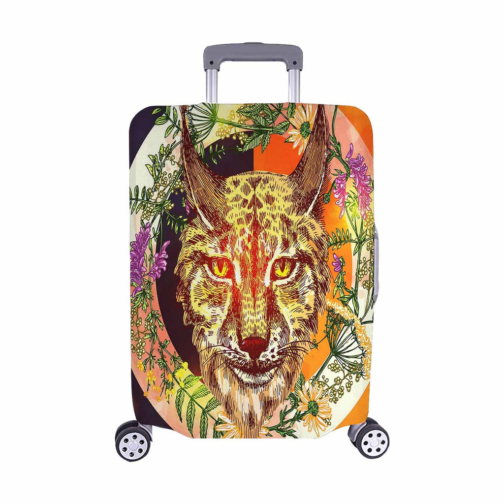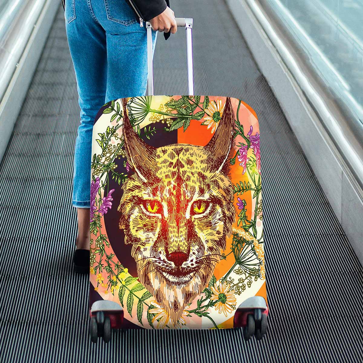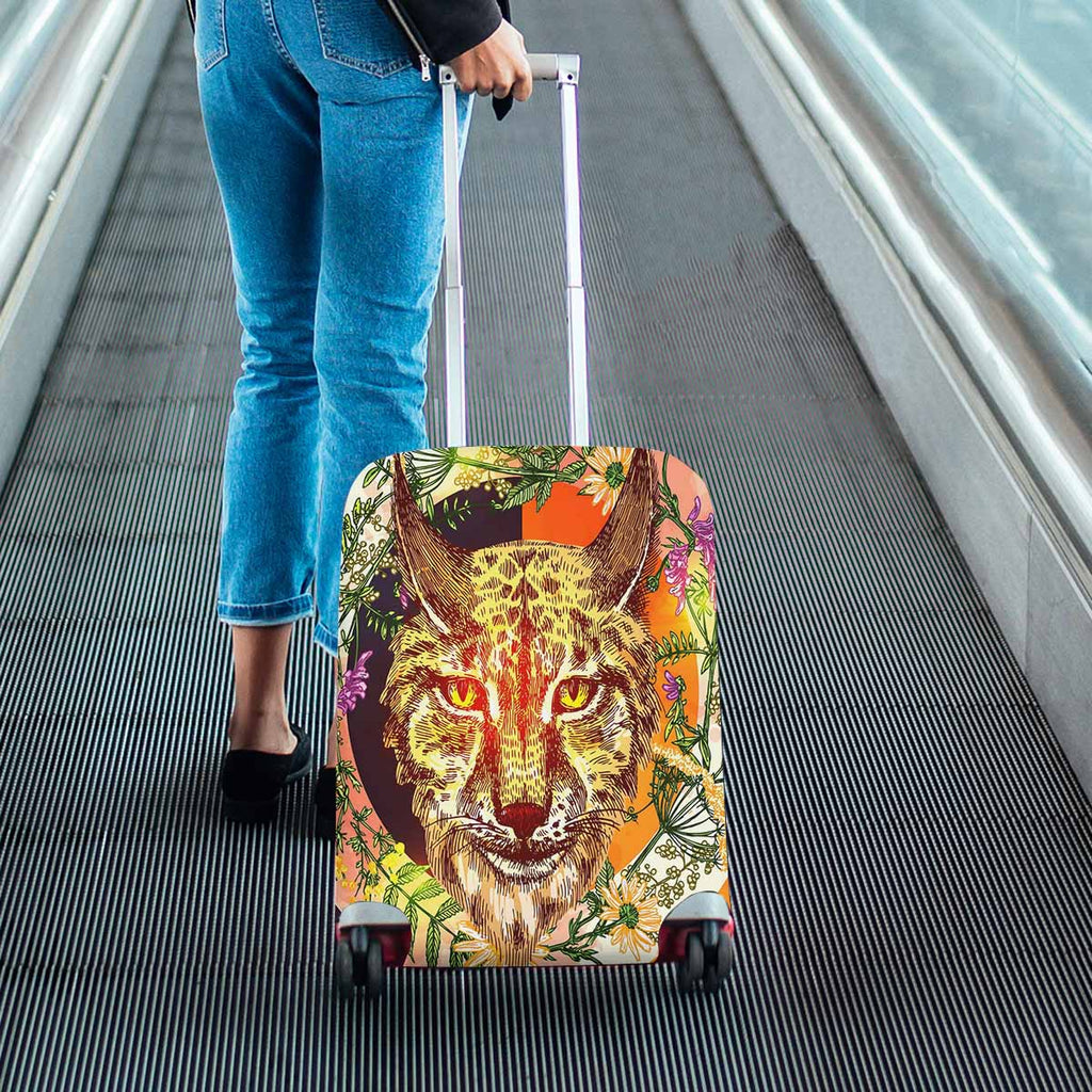 Animals themed Cover for Luggage suitcase printed Boho style illustration with lynx wildflowers and crystal