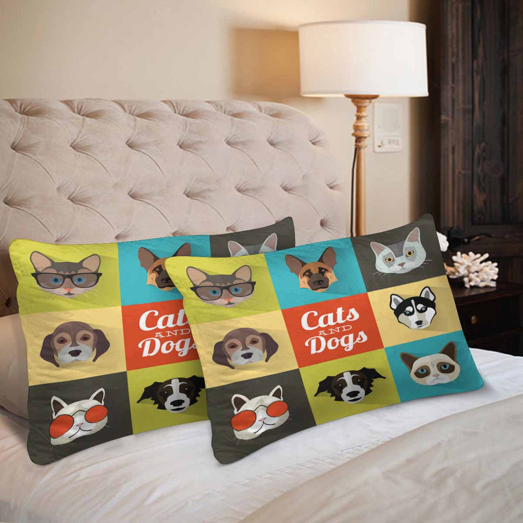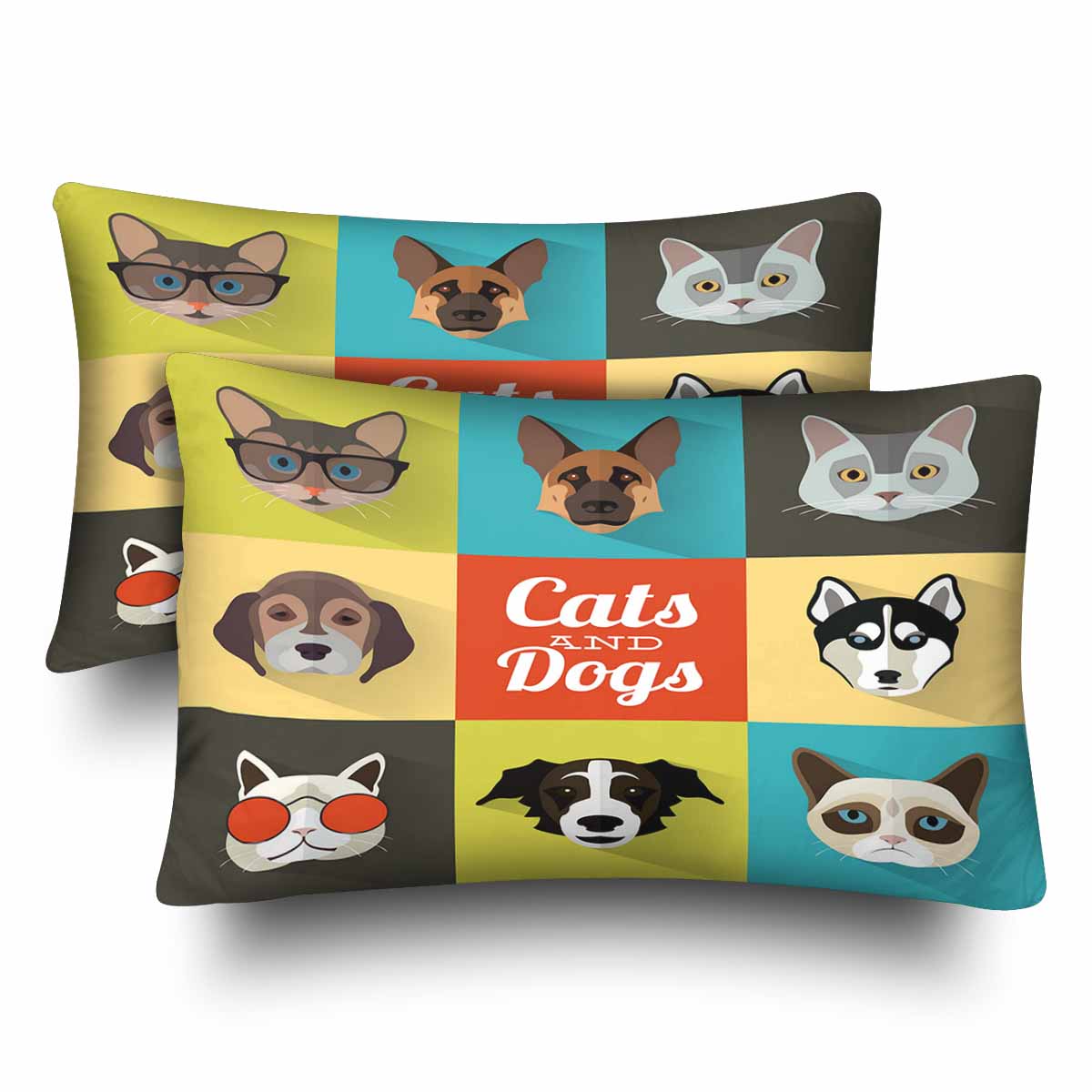 Animals themed Rectangle Pillow Cases printed Animal Portrait Set with Flat Design,Cats and Dogs