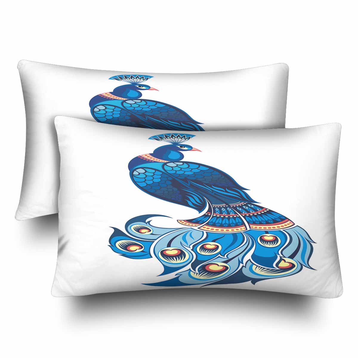 Animals themed Rectangle Pillow Cases printed Blue Peacock