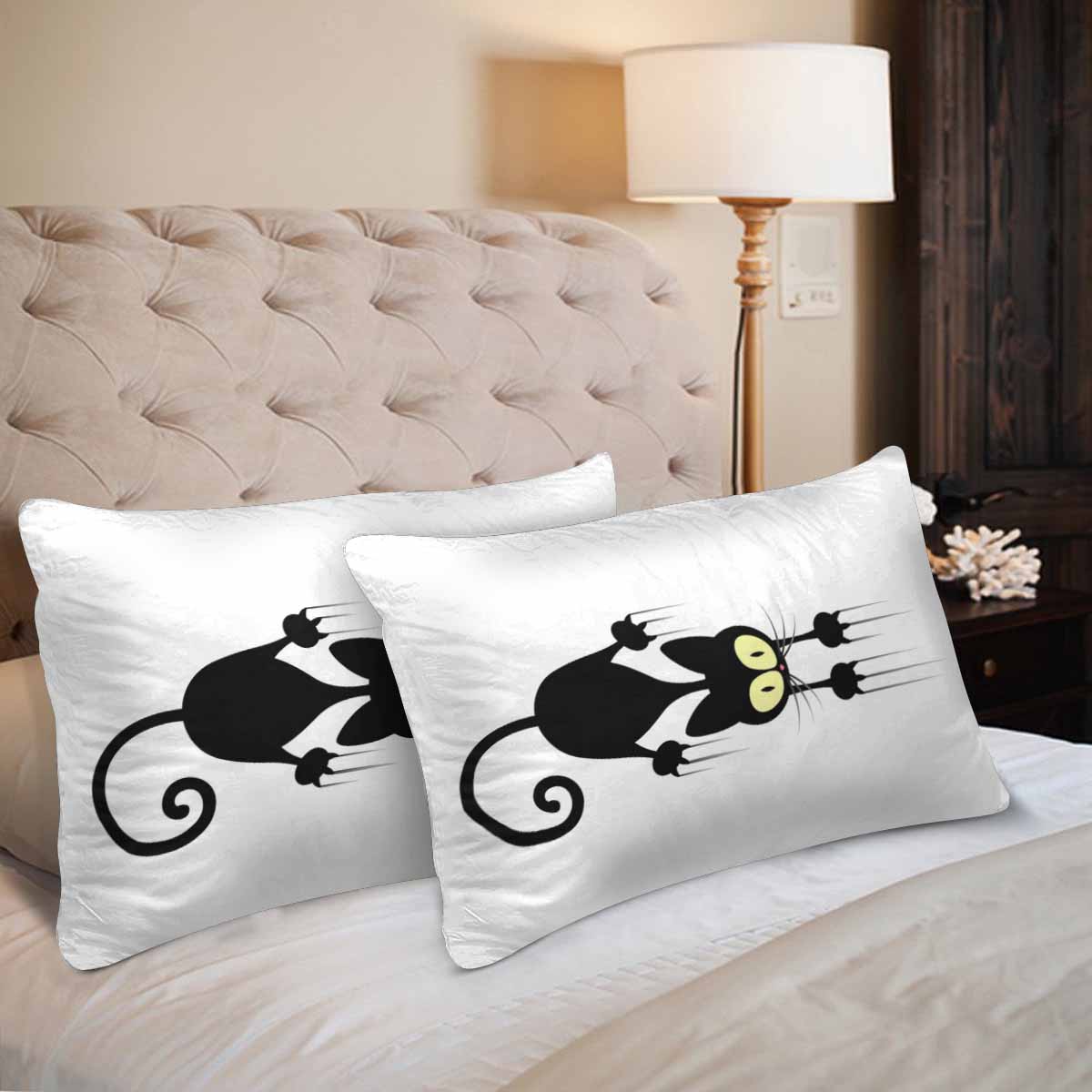 Animals themed Rectangle Pillow Cases printed Cat scratching wall