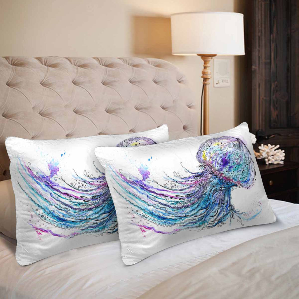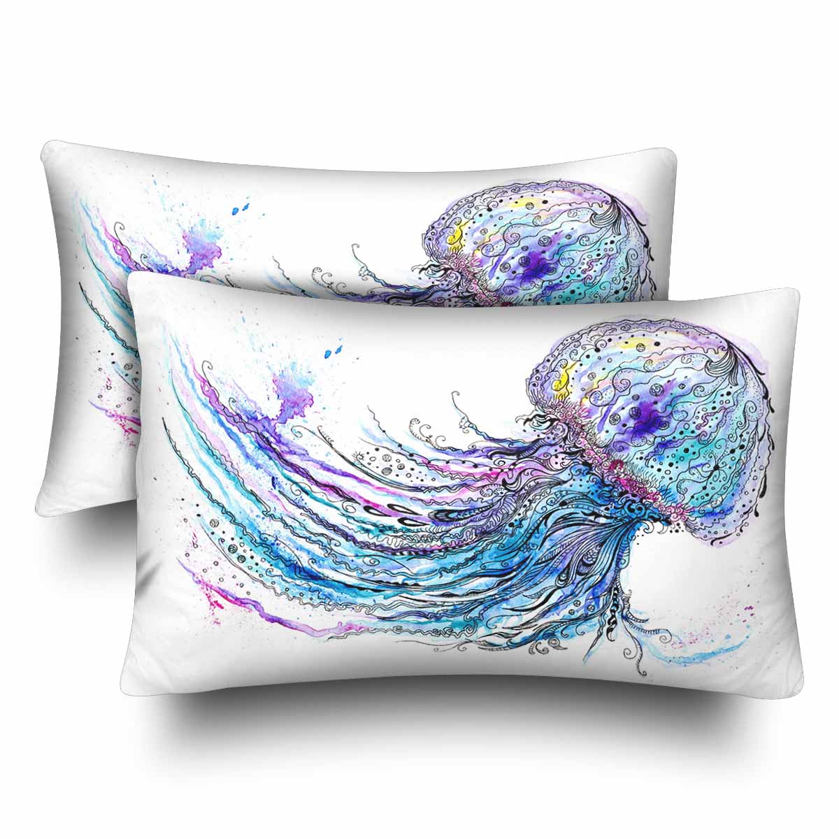 Animals themed Rectangle Pillow Cases printed Jelly fish watercolor and ink painting