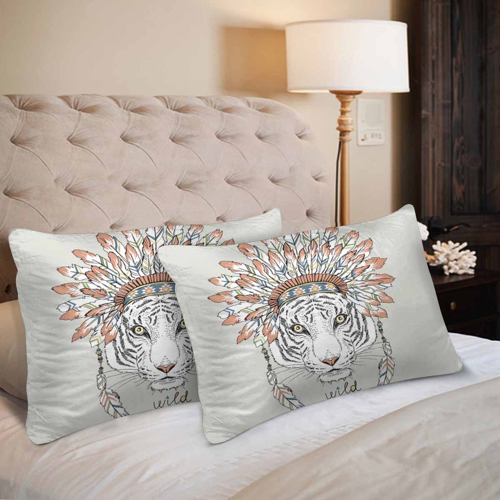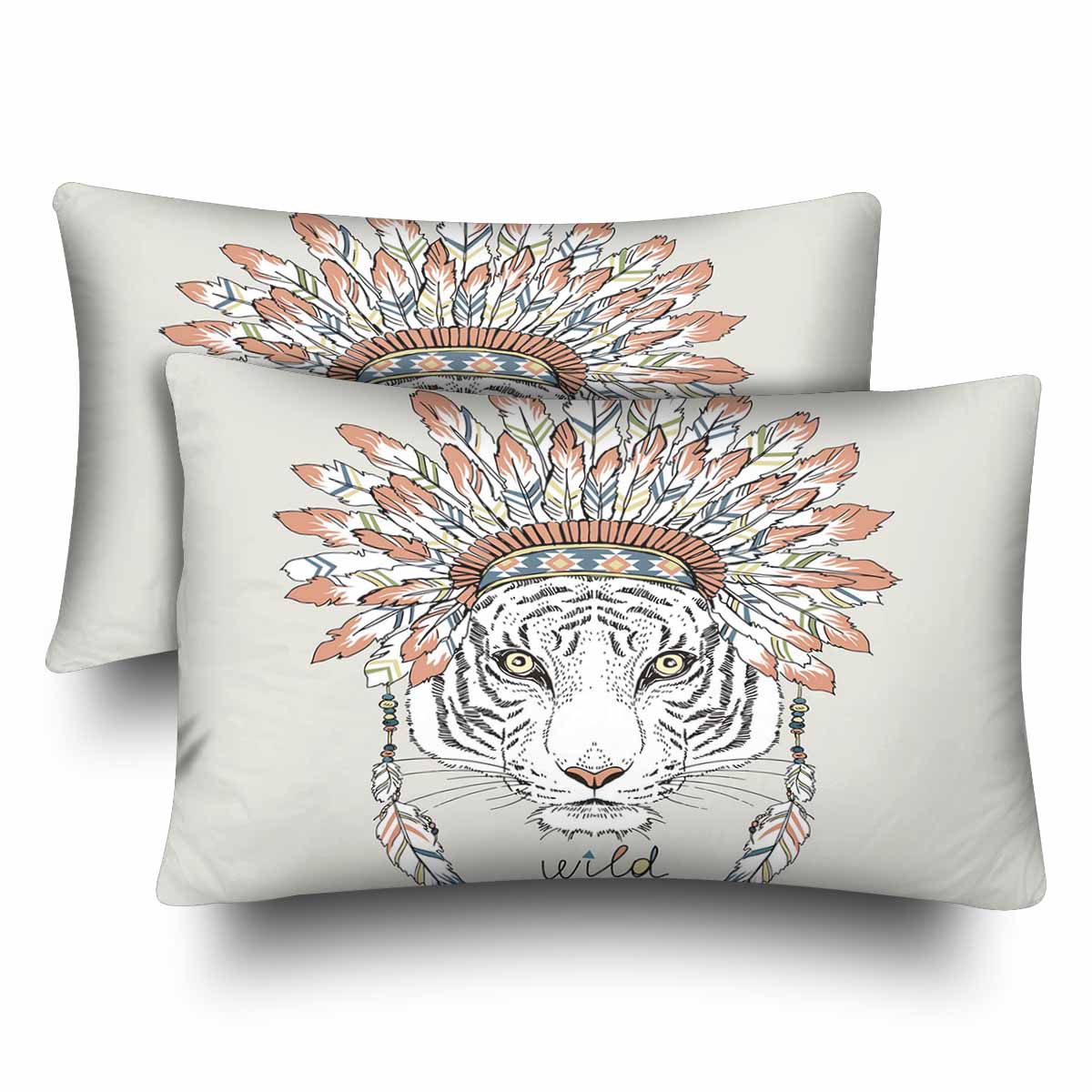 Animals themed Rectangle Pillow Cases printed Native american tiger in war bonnet