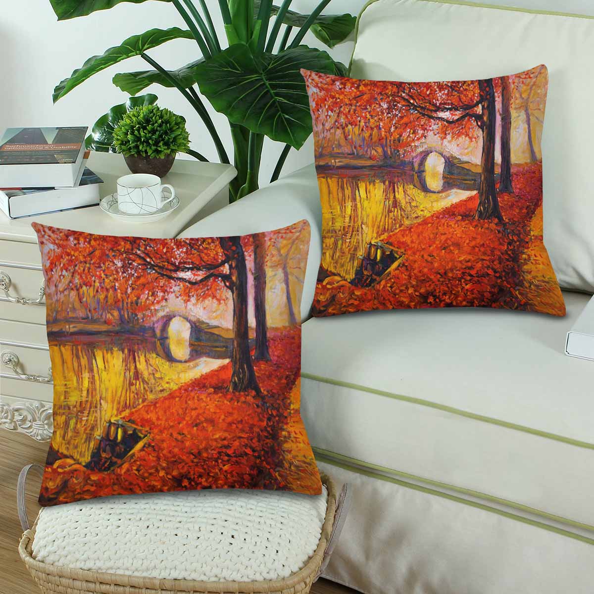 Arts themed Pillow Cases printed with Original oil painting showing beautiful Autumn park and lake
