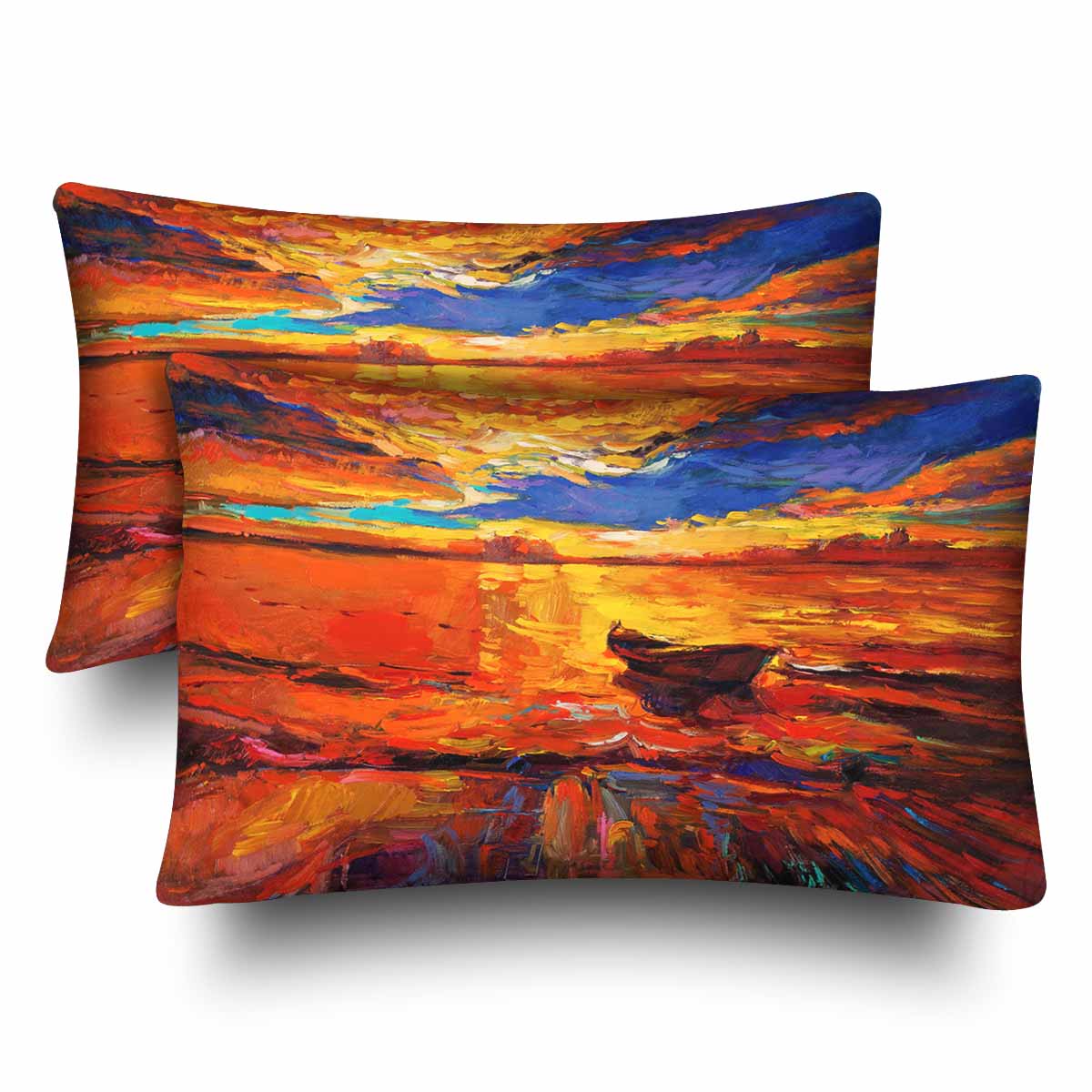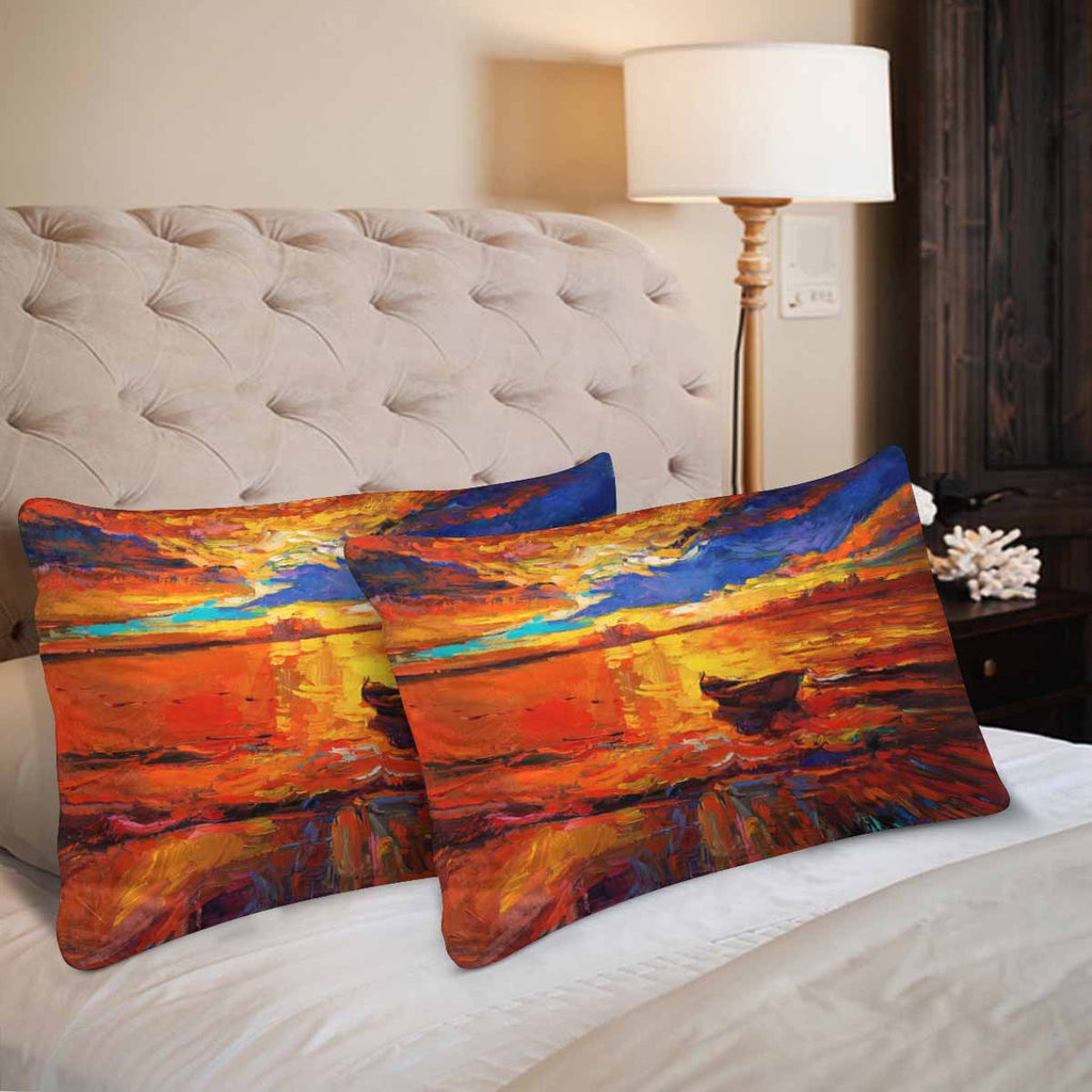 Arts themed Rectangle Pillow Cases printed A boat on golden sunset