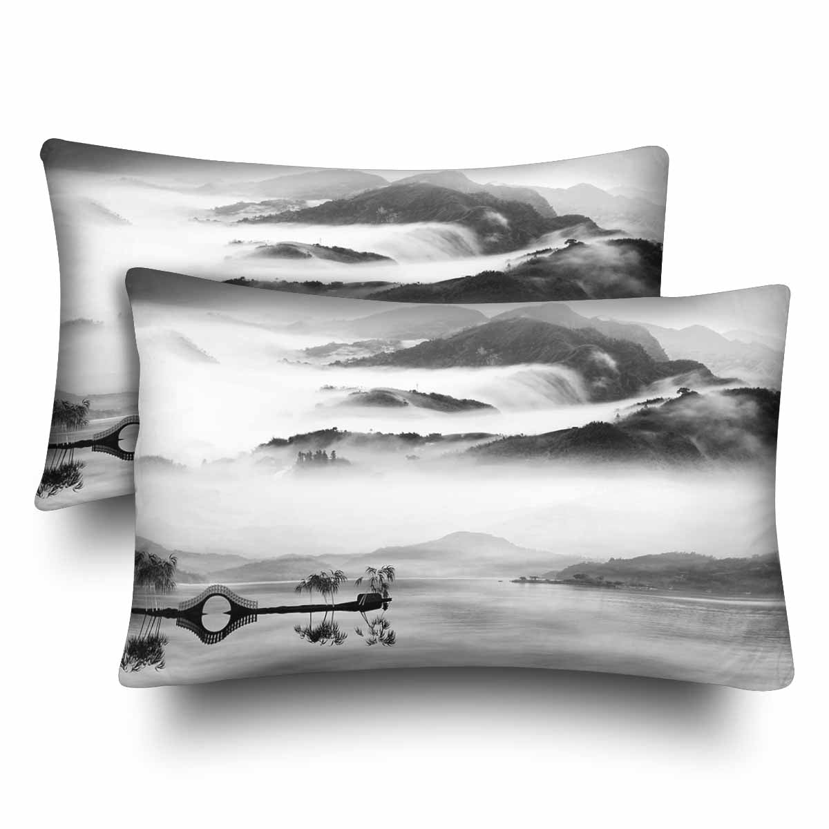 Arts themed Rectangle Pillow Cases printed Painting style of chinese landscape
