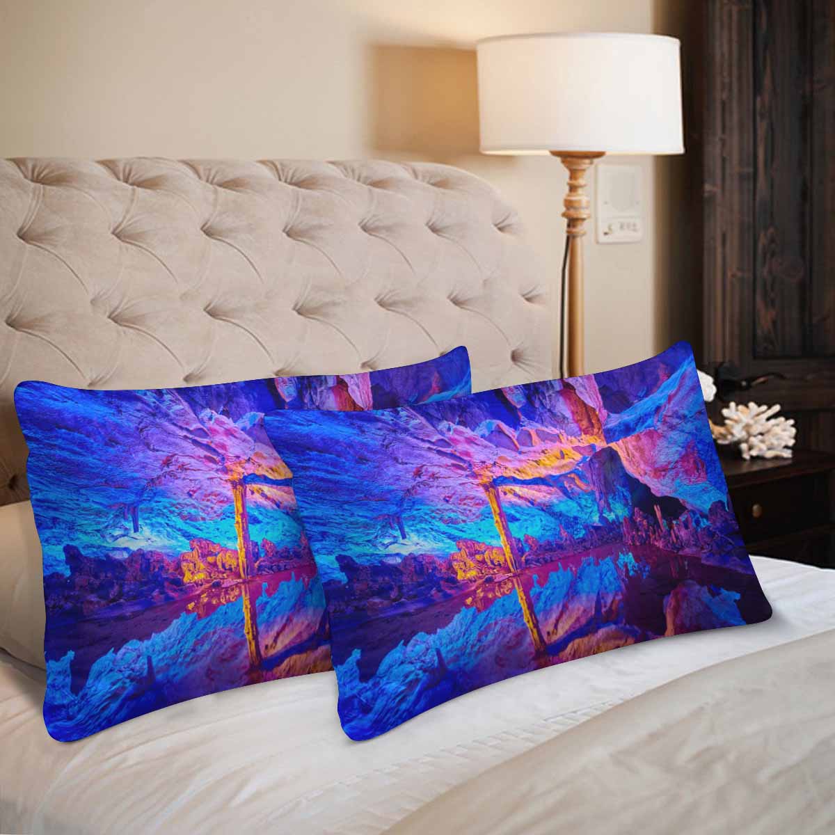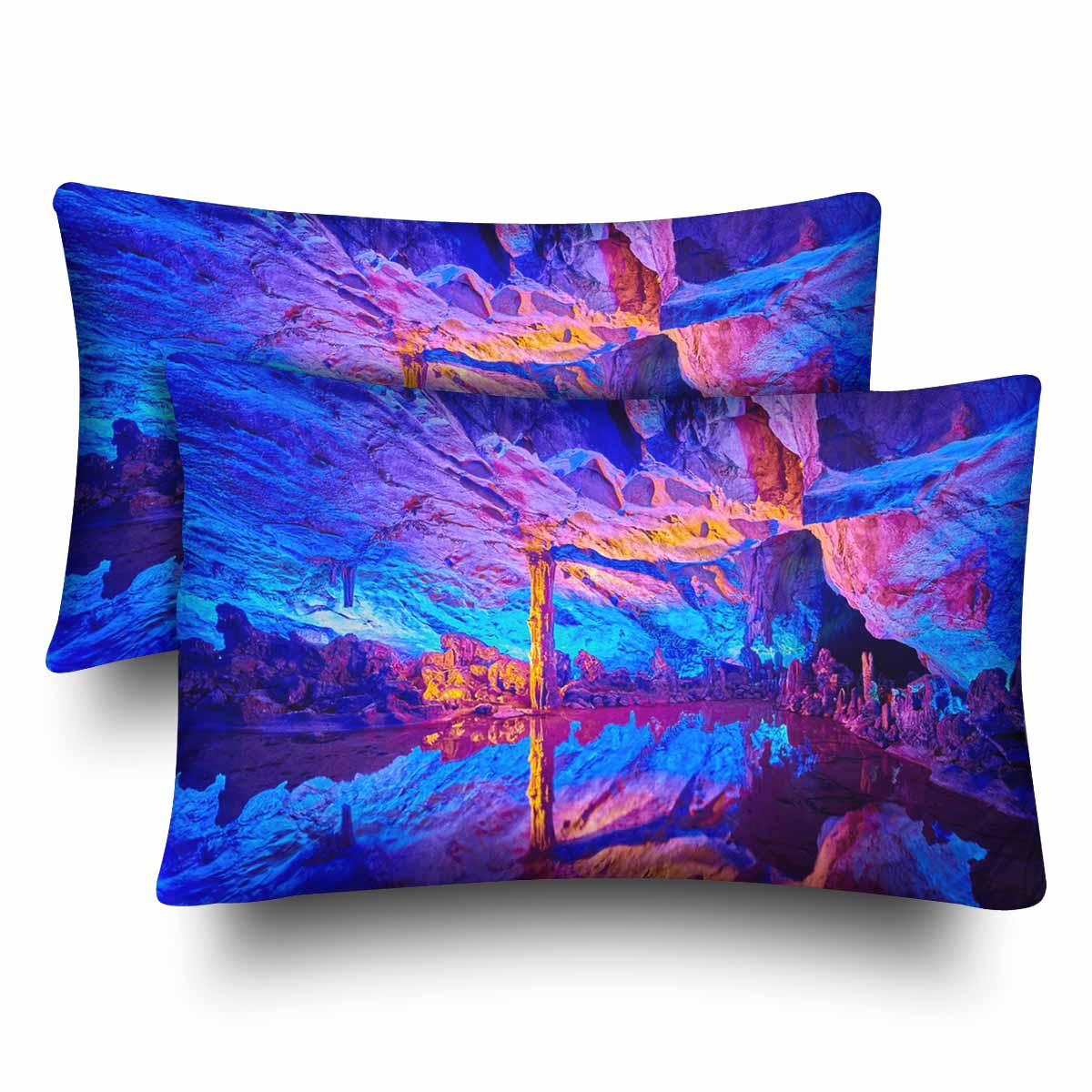 Arts themed Rectangle Pillow Cases printed The Reed Flute Cave natural limestone with multicolored lighting in China