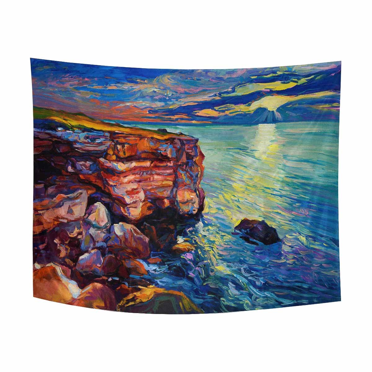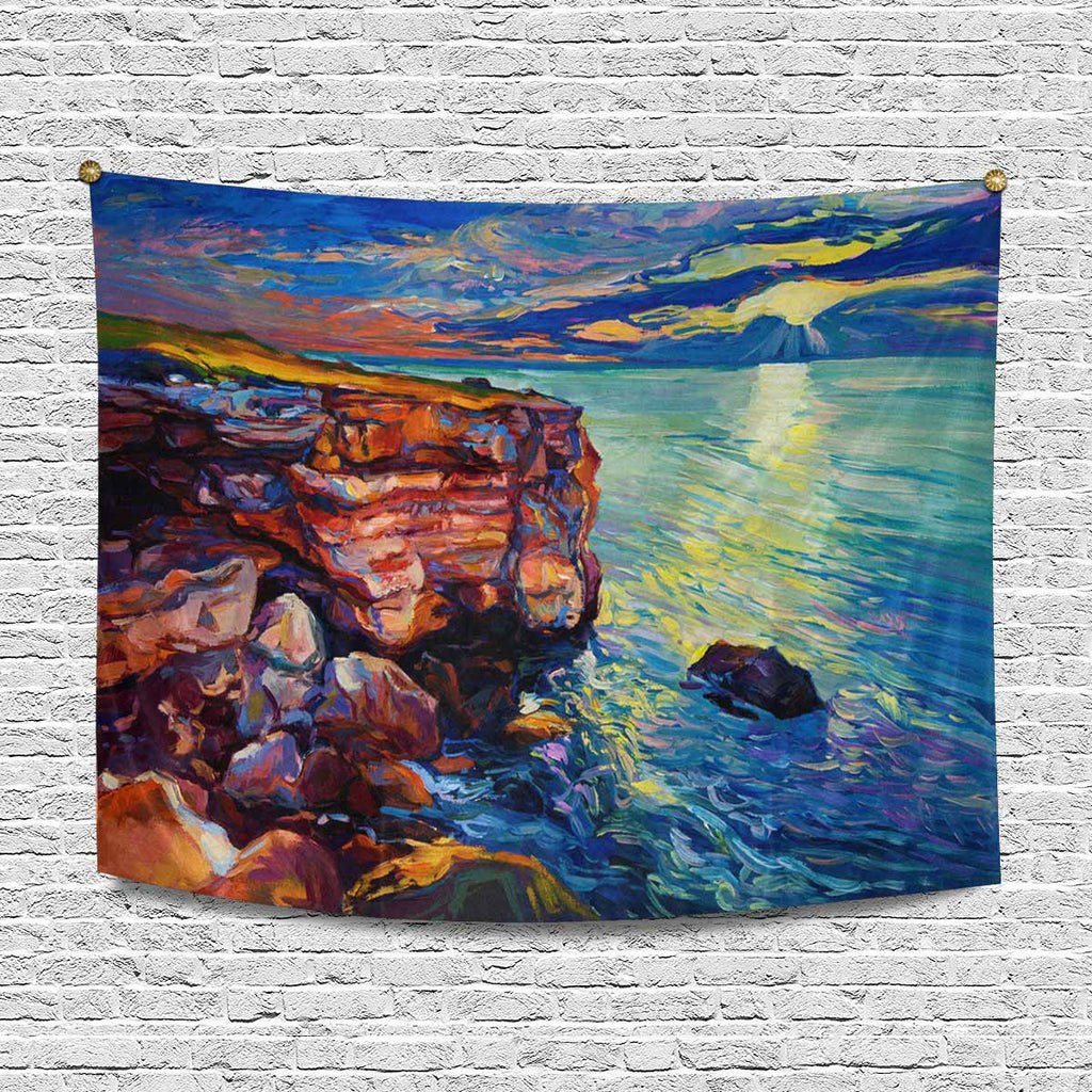 Arts themed Wall Tapestry printed Ocean and cliffs