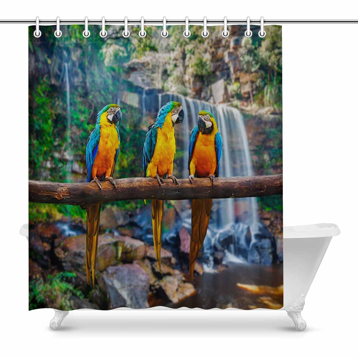Shower Curtains print graphic with Blue and Yellow Macaw