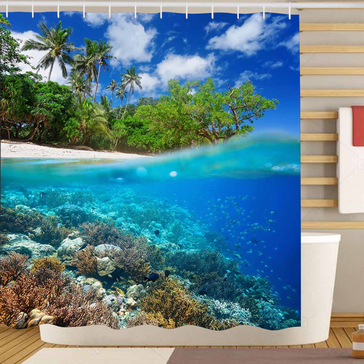 Beach and Ocean themed print on shower curtains for bathroom, create a brilliant atmosphere in your bathroom, include a selection of different stylish and custom-made designs for your bath decoration.