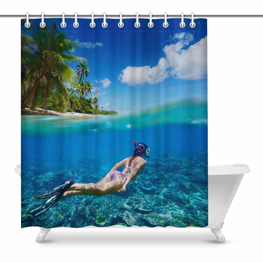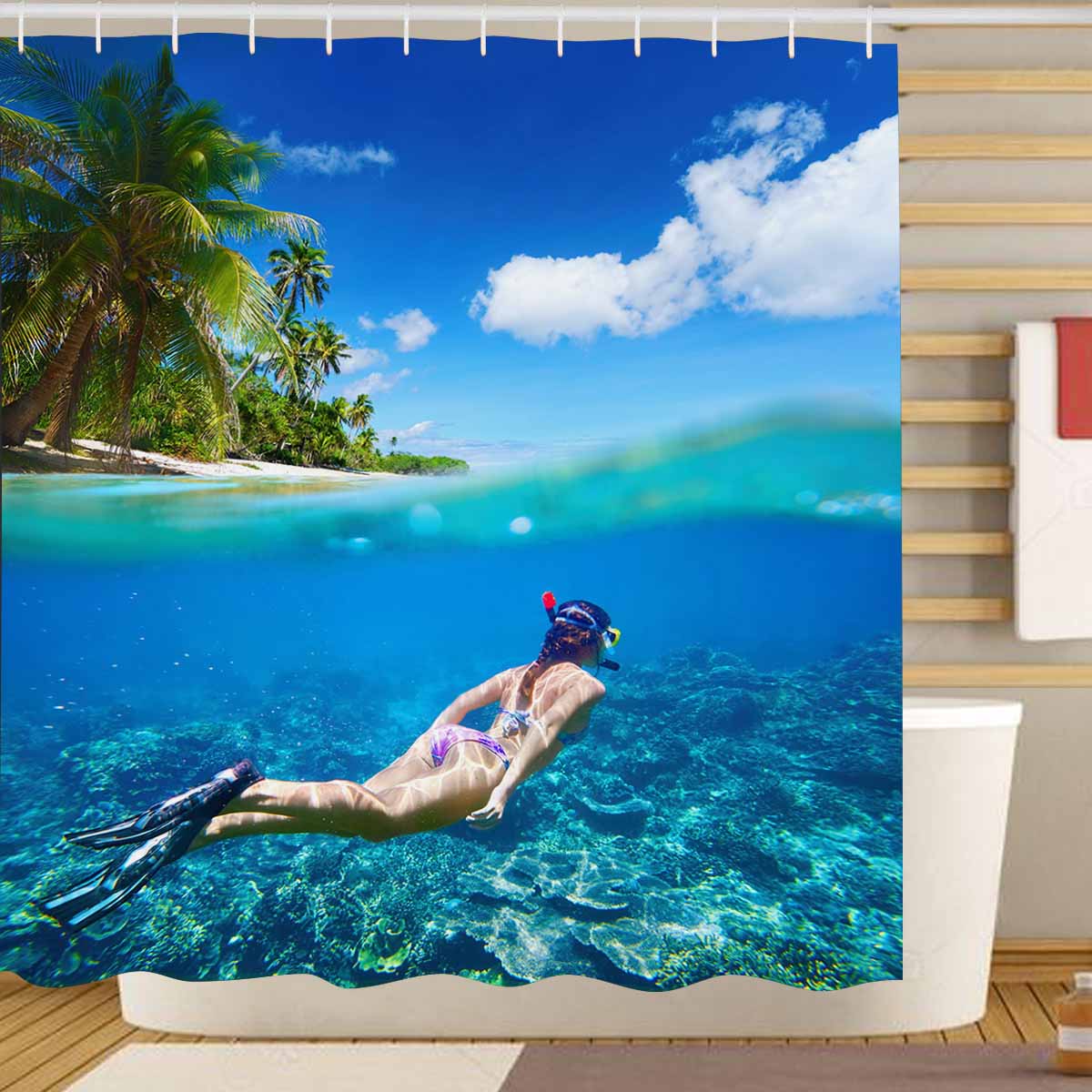 Beach and Ocean themed print on shower curtains for bathroom, create a brilliant atmosphere in your bathroom, include a selection of different stylish and custom-made designs for your bath decoration.