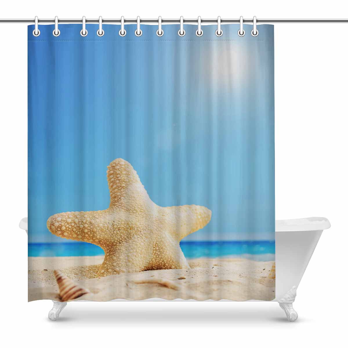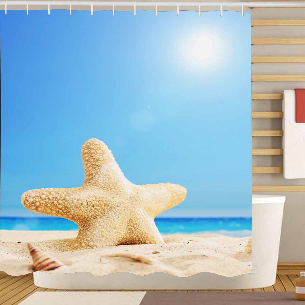 Beach and Ocean themed print on shower curtains for bathroom, create a brilliant atmosphere in your bathroom, include a selection of different stylish and custom-made designs for your bath decoration.
