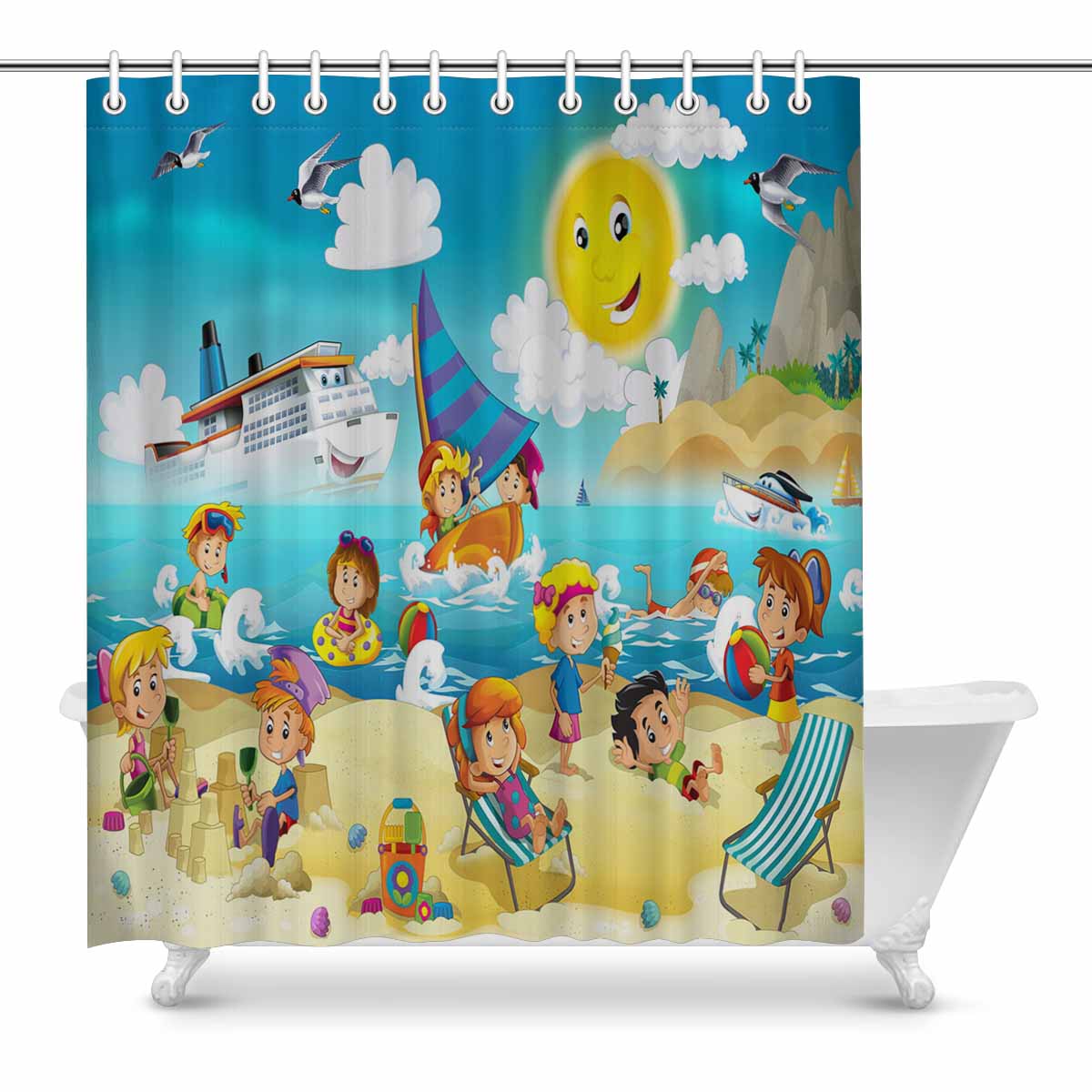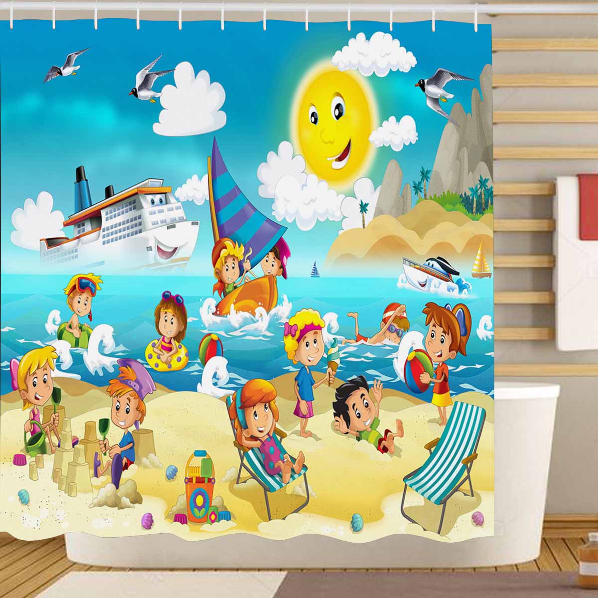 Beach and Ocean themed print on shower curtains for bathroom, create a brilliant atmosphere in your bathroom, include a selection of different stylish and custom-made designs for your bath decoration.