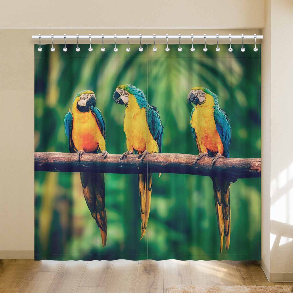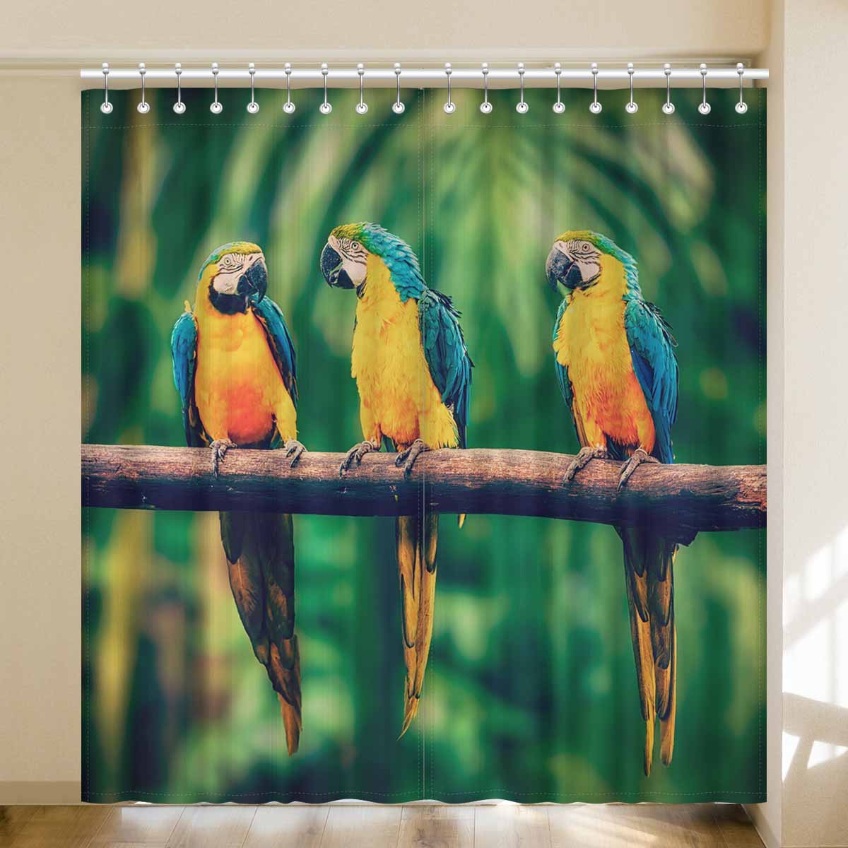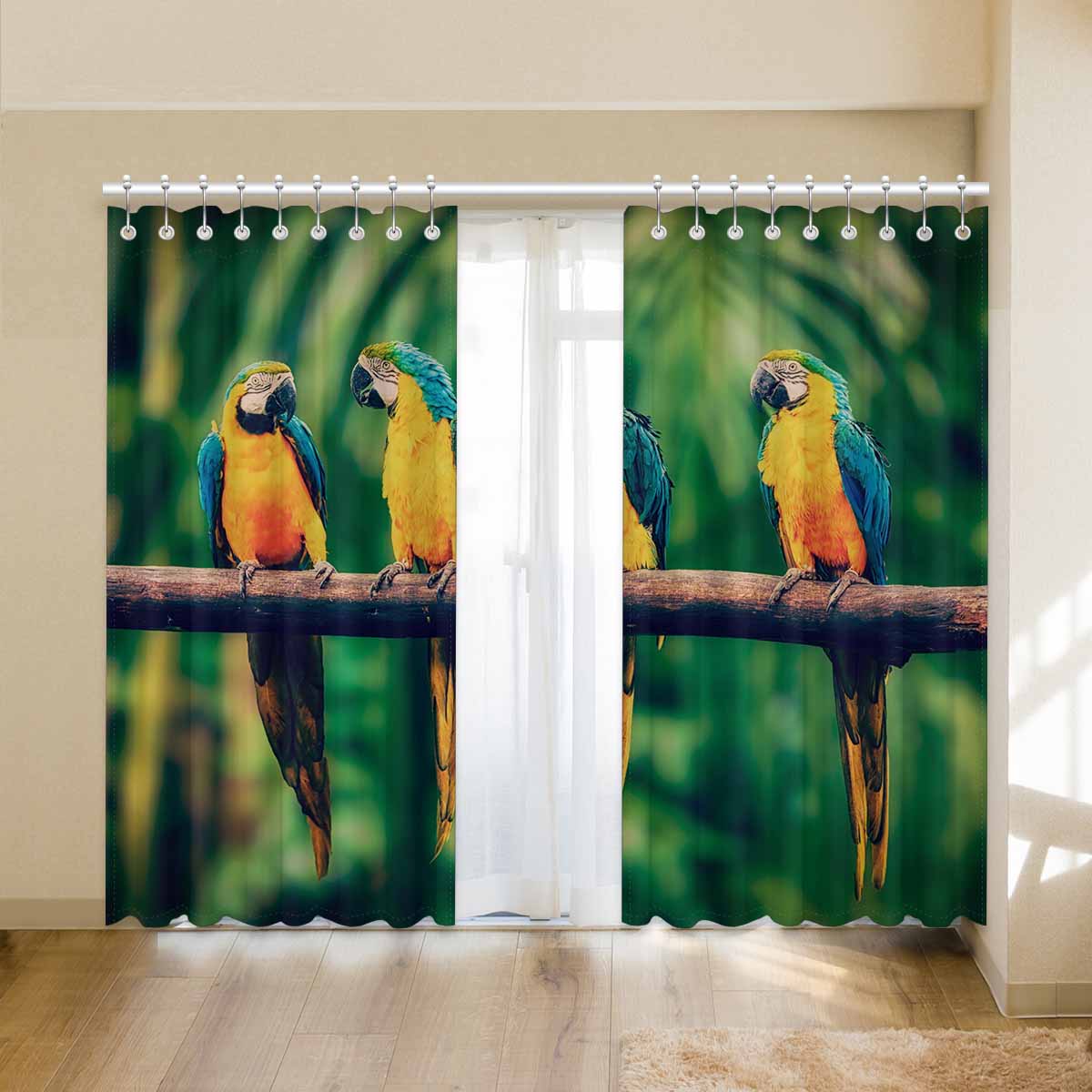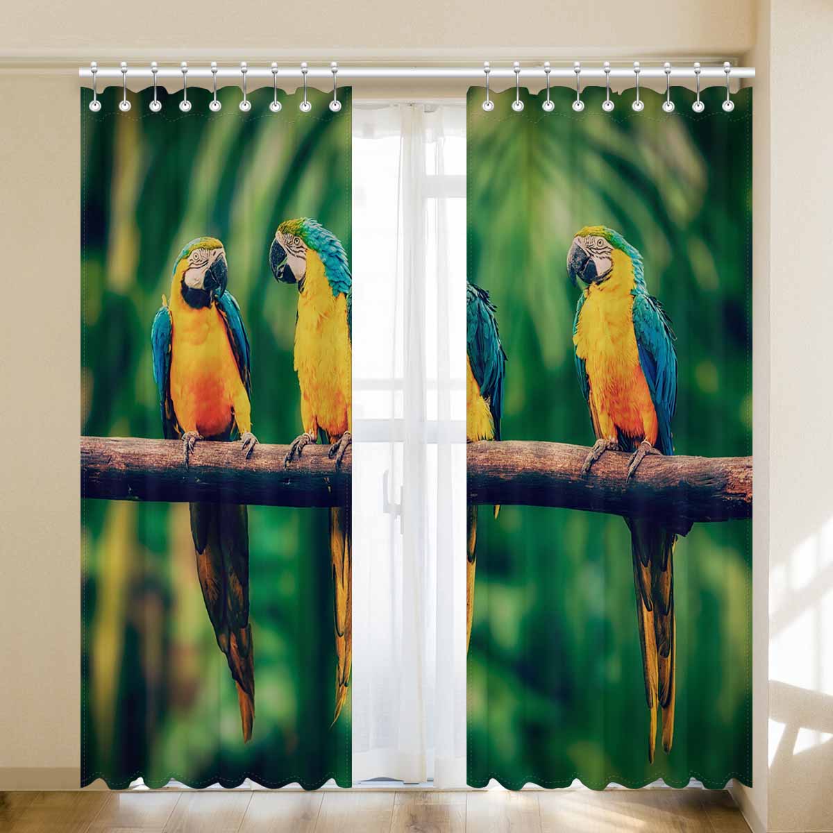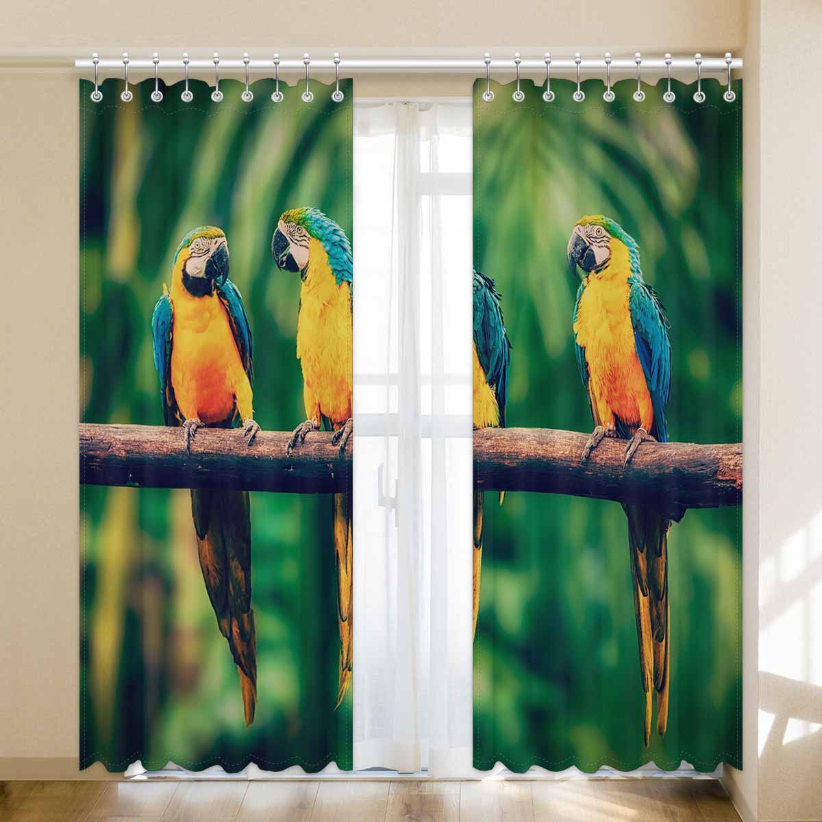 Window Curtains print Blue-and-Yellow Macaw in jungle