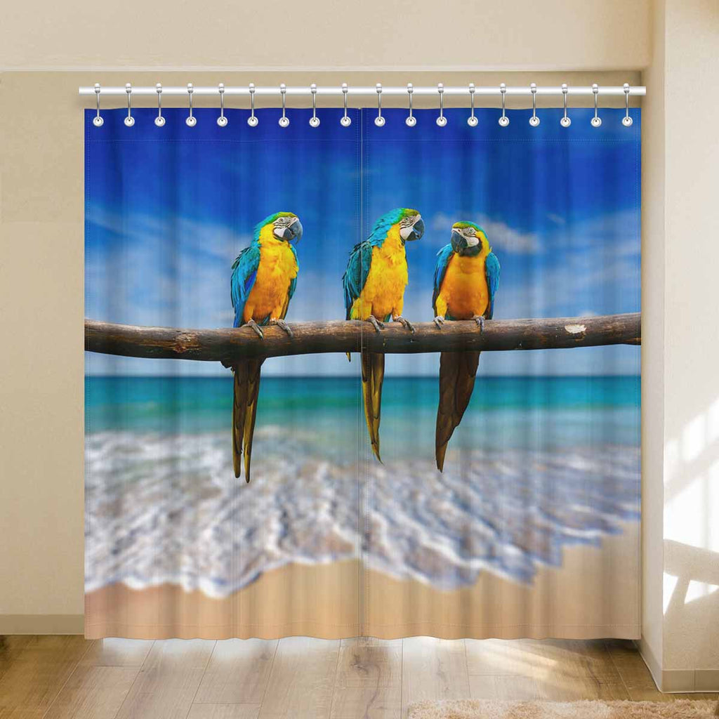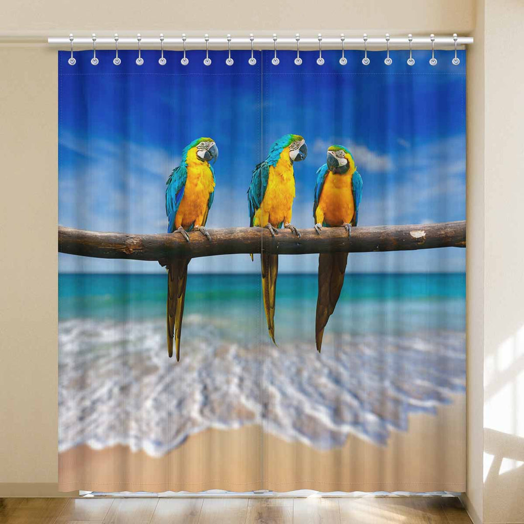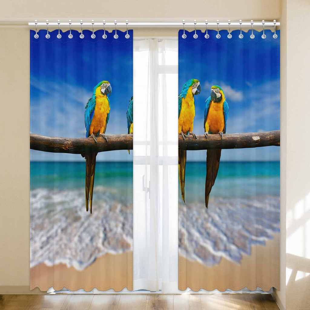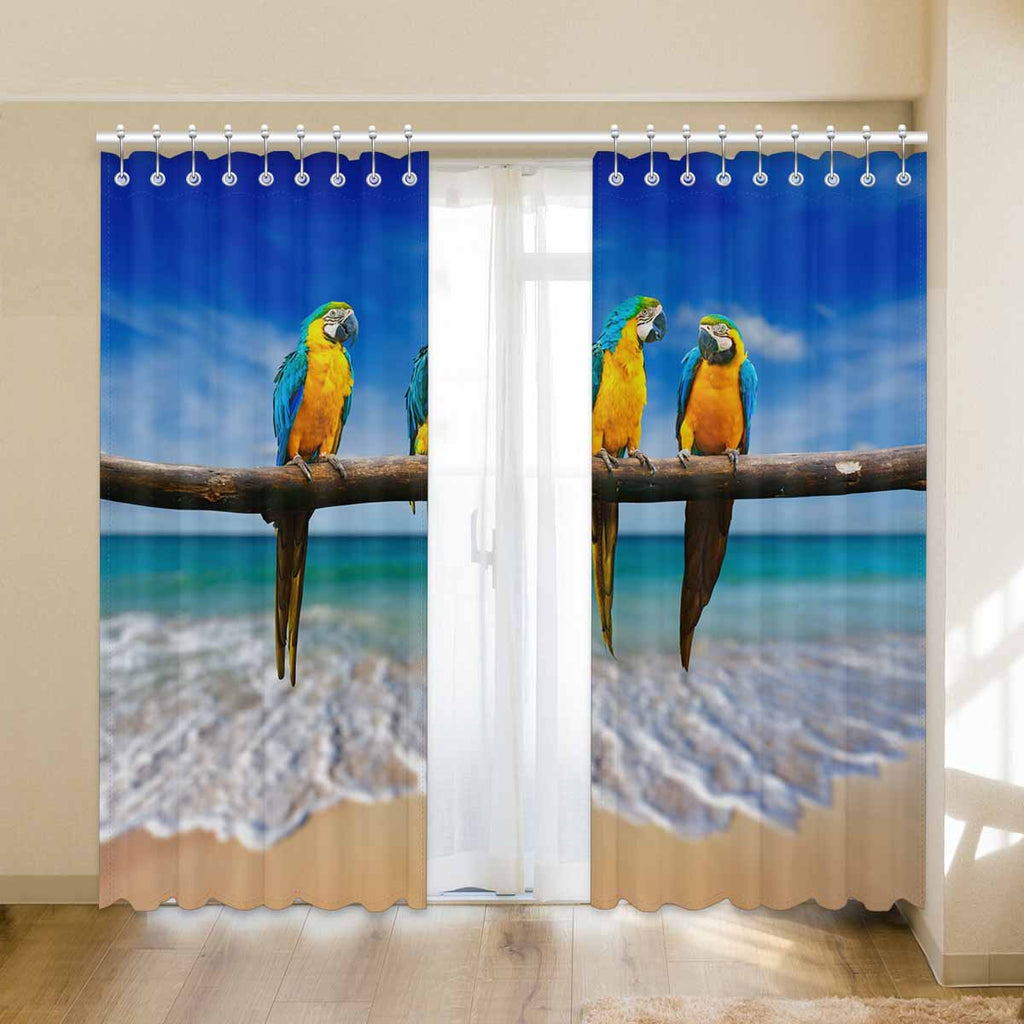 Window Curtains print Macaw on beach